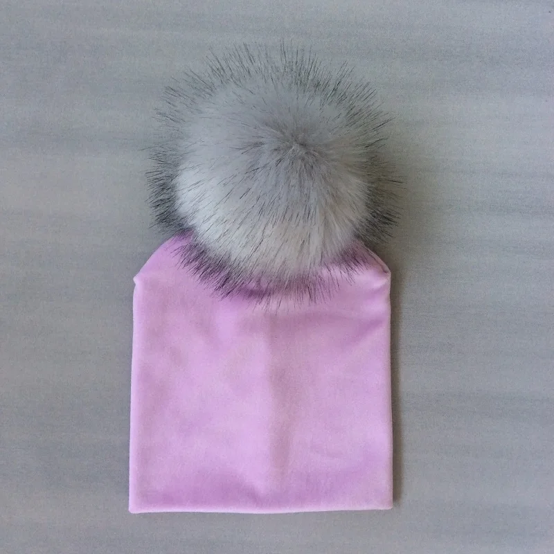 Осенне-зимняя детская однотонная бархатная шапка с помпоном для девочек, детская шапка с помпоном, аксессуары для детей