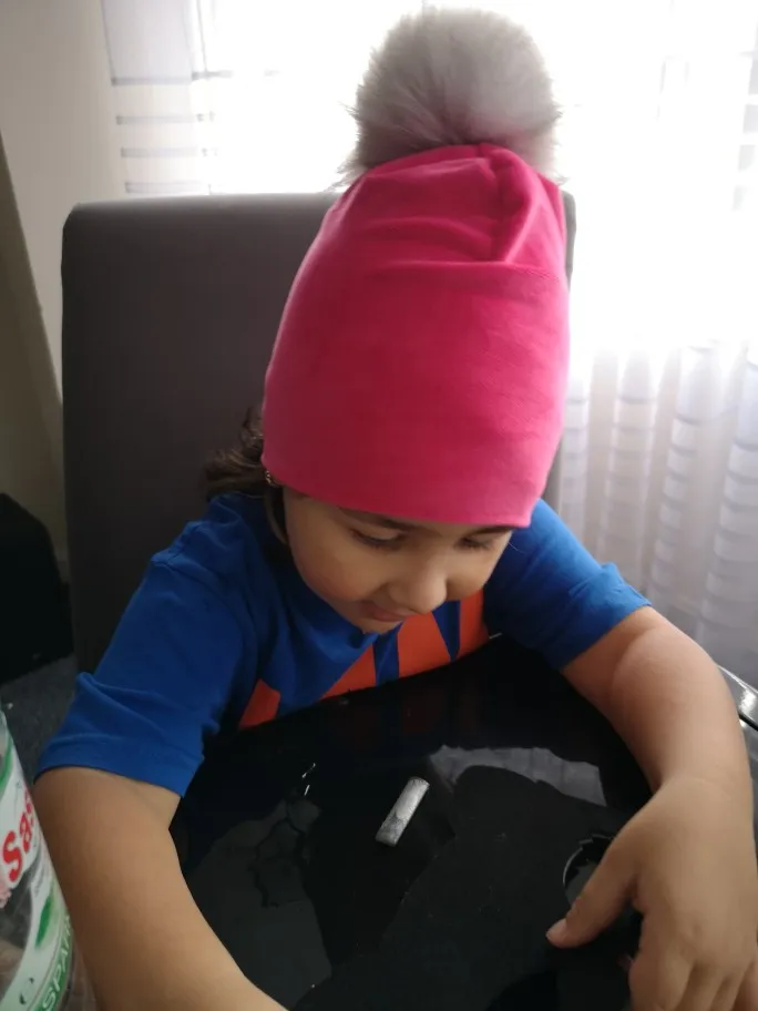 Фантастический, красивый, мягкий, мягкий, яркий цвет (как на фото) и Помпон большой и красивый. Я купил этот размер на 2 года, и все в порядке. Не туго и не большого размера. Идеально. Если бы были другие цвета, такие как синий, я бы купил еще раз.