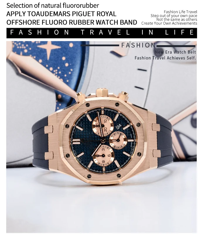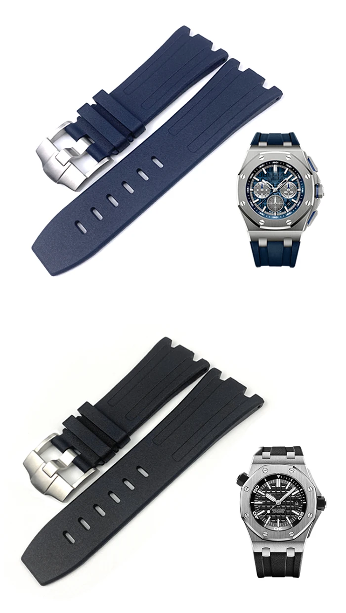 Ремешок резиновый для наручных часов Audemars Piguet, ремень из фторучного каучука для часов, цвет черныйсиний, 28 мм30 мм