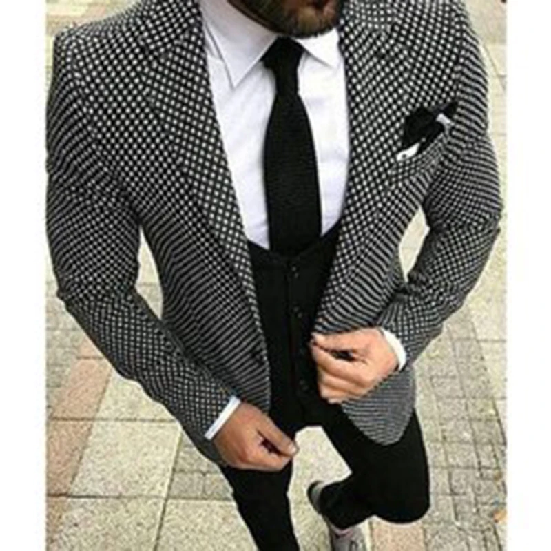 2020 новейшие черные мужские свадебные костюмы, смокинги для жениха, выпускного вечера, комплект из 3 предметов, облегающий костюм для шафера (пиджак + брюки + жилет)