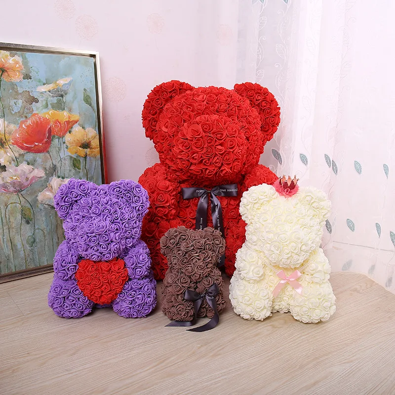Розовый медведь, плюшевая игрушка, 25 см, мыльный пенопласт, медведь из роз, мишка, розовый цветок, искусственный Новогодний подарок на Рождество