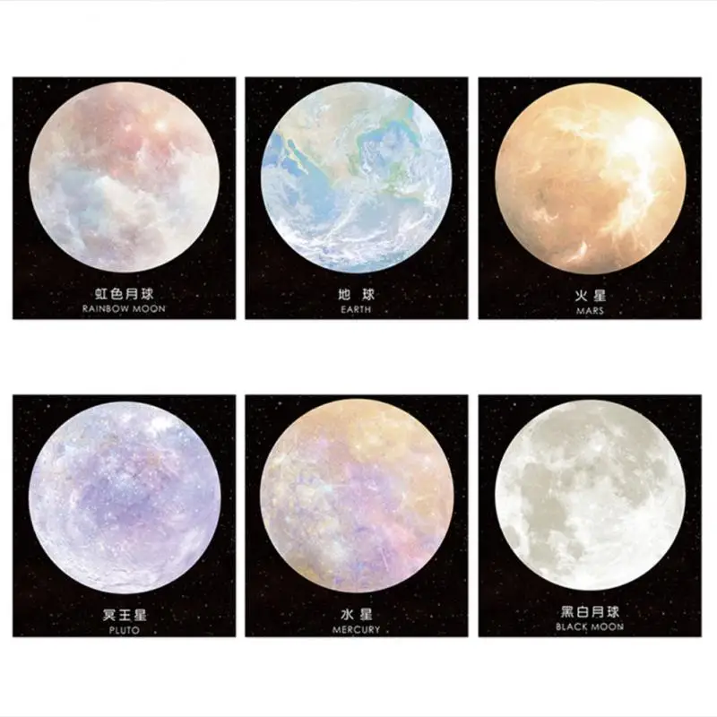 Креативный самоклеящийся круглый блокнот из серии Планета Земля Марс, бумага для заметок, канцелярские принадлежности, этикетки, наклейки