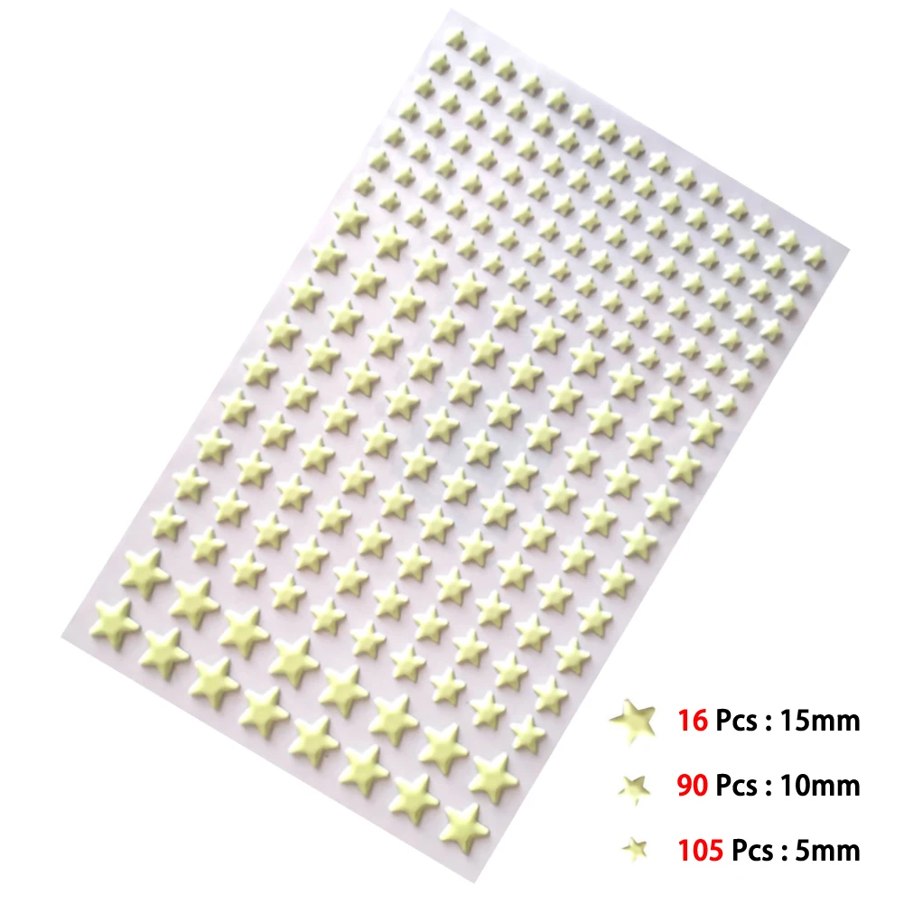 * 1. 413 реалистичные Светящиеся в темноте Звездные декоративные наклейки включают 211 пентаграммы и 202 точки! Вы можете создать узор, который вам нравится, на гладкой поверхности. Эти 3D звезды помогут вам создать фантастическое звездное небо в комнате, это светится в темноте, украшение в виде звезд сделает вашу комнату настоящим ночным небом. В темноте звезды сверкают и комната становится звездным сияющим небом. Светится в темноте.