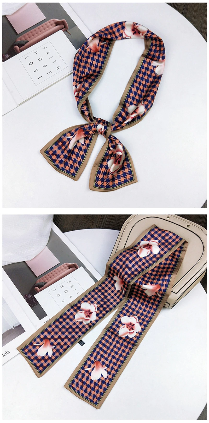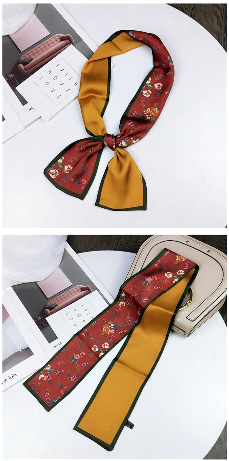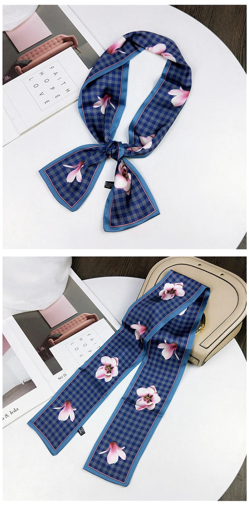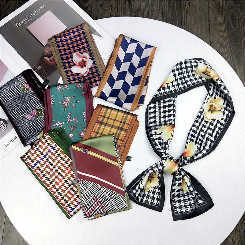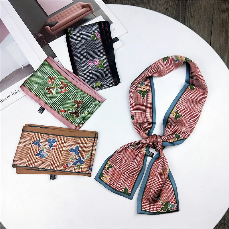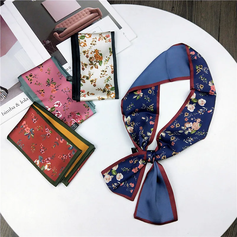 Модные двусторонние боксеры с цветами, длинный шарф, шелковый шарф, Женская Корейская версия для весны и осени, универсальные ленты на запястье