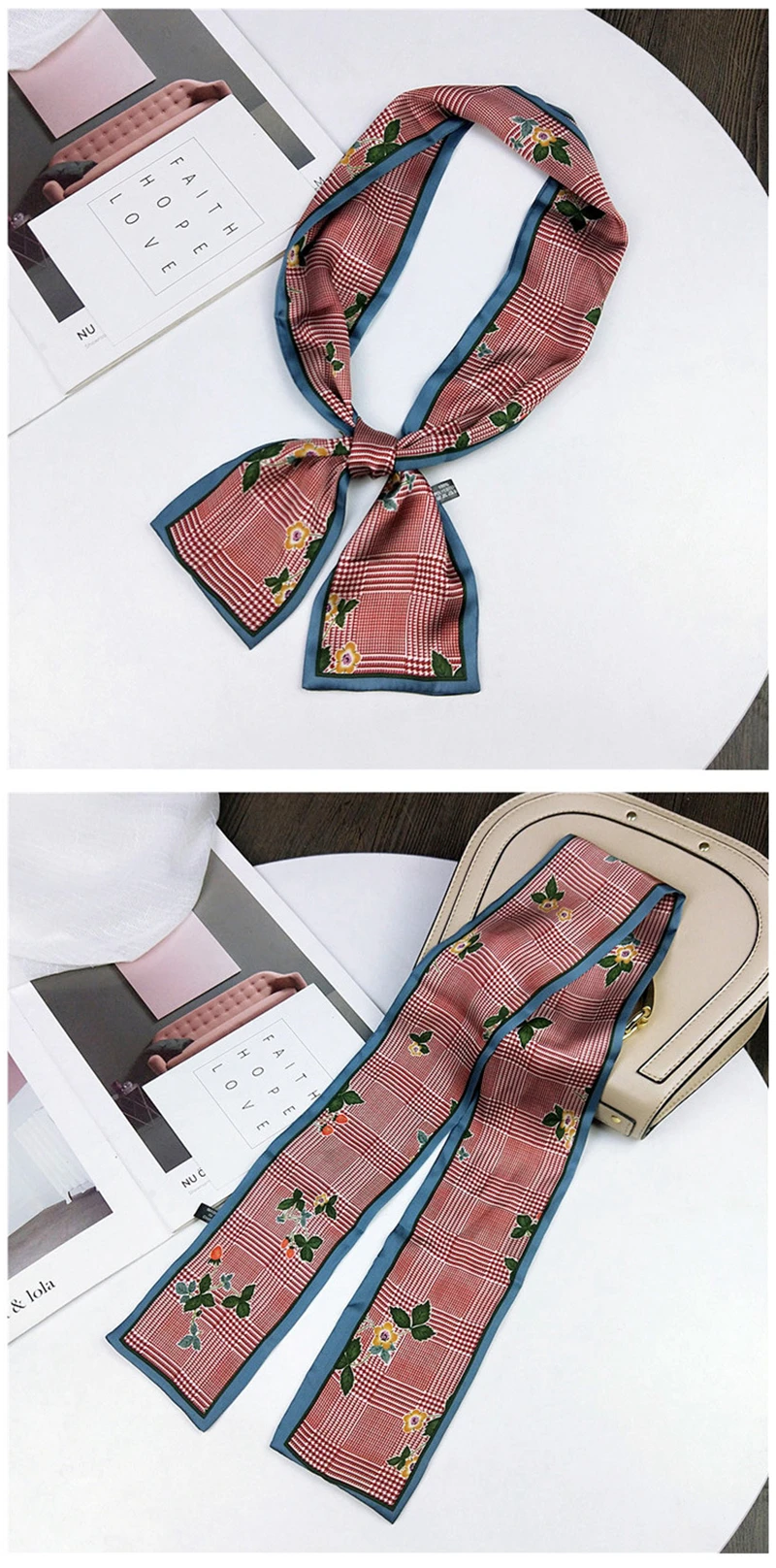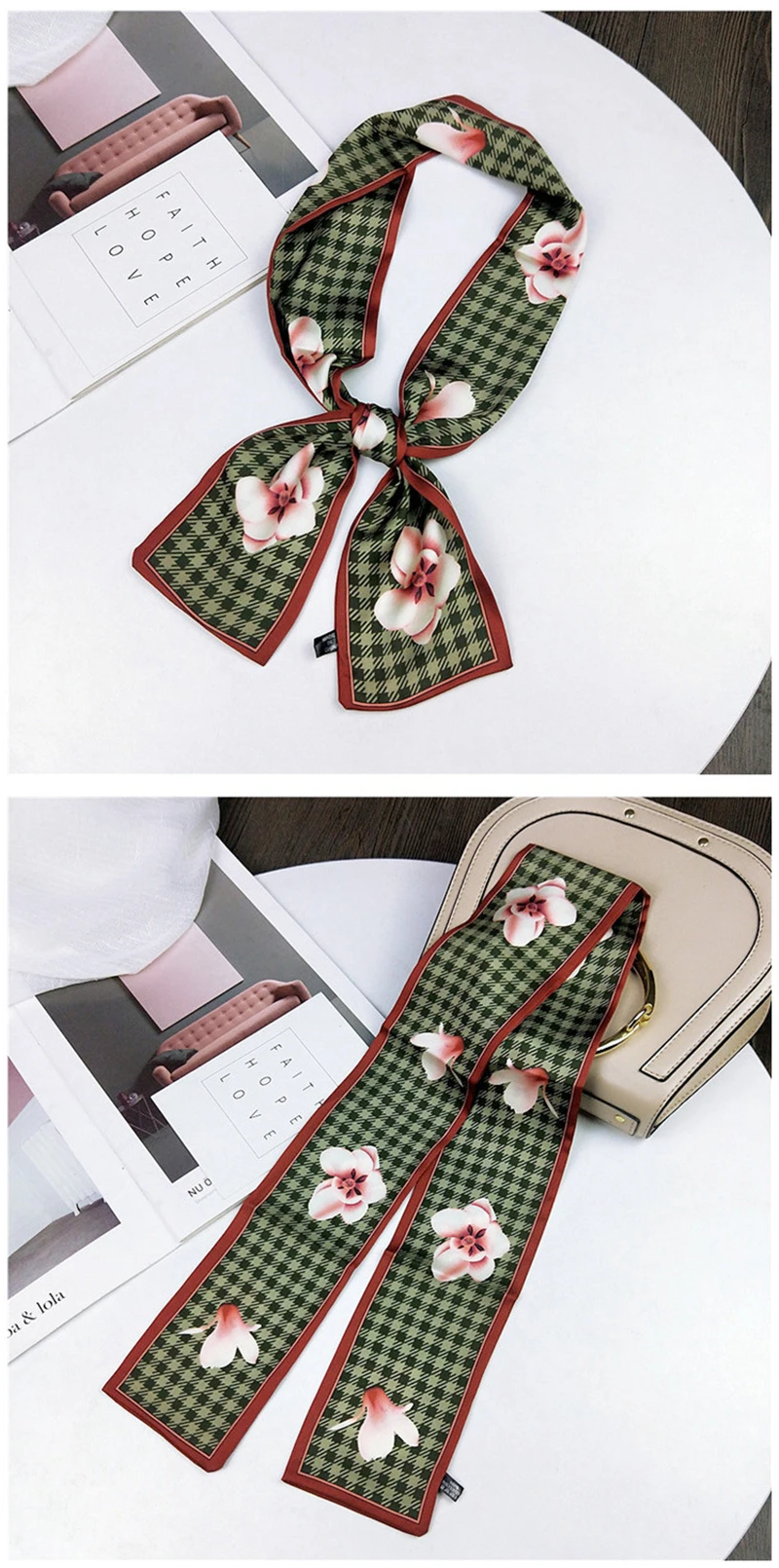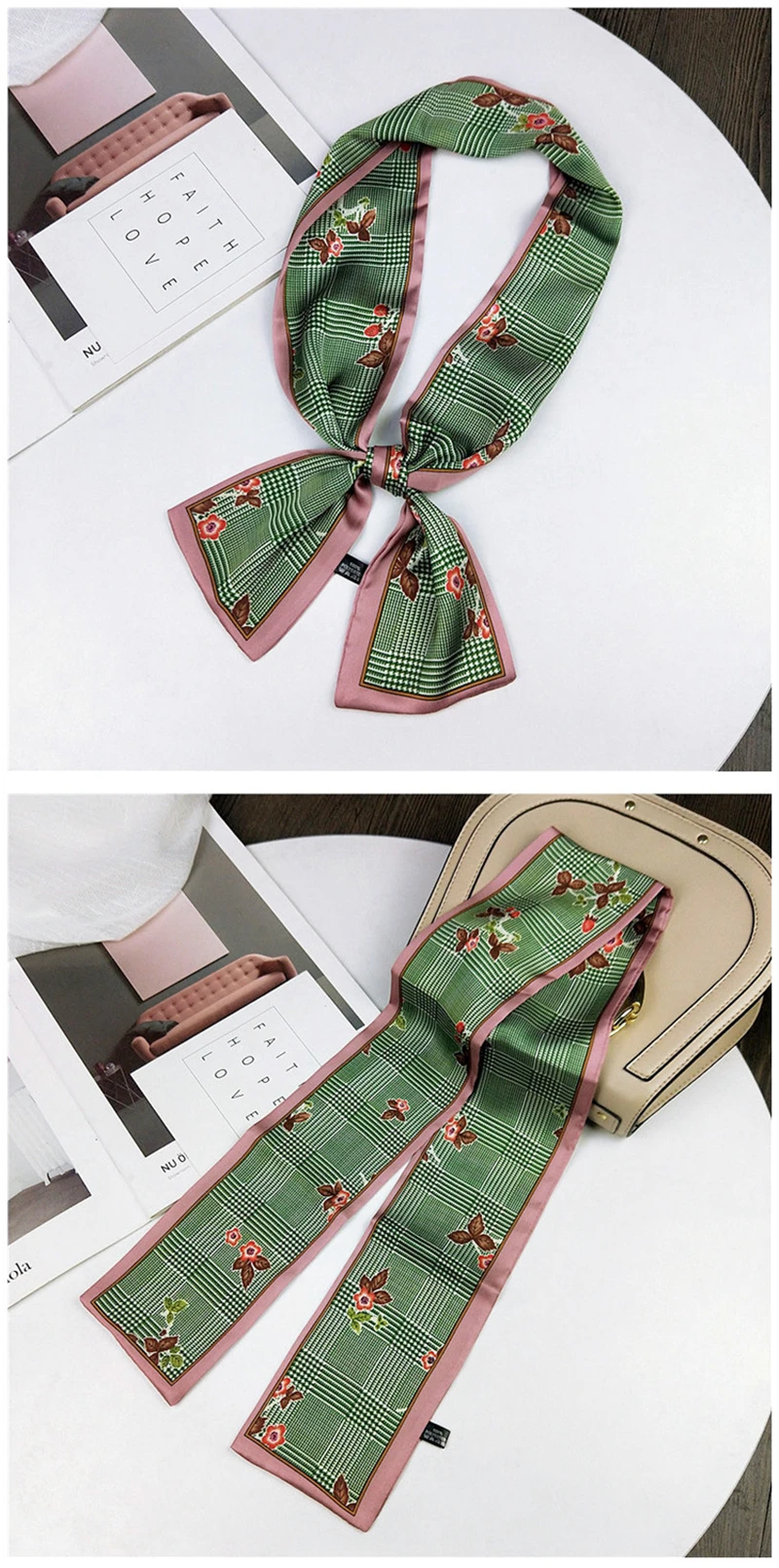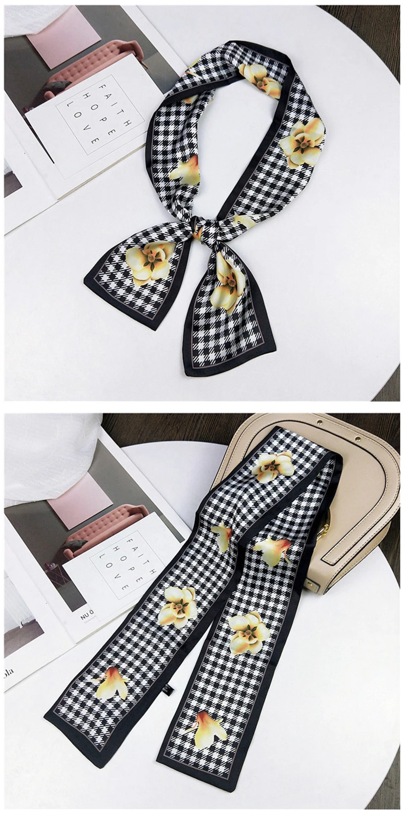 Модные двусторонние боксеры с цветами, длинный шарф, шелковый шарф, Женская Корейская версия для весны и осени, универсальные ленты на запястье
