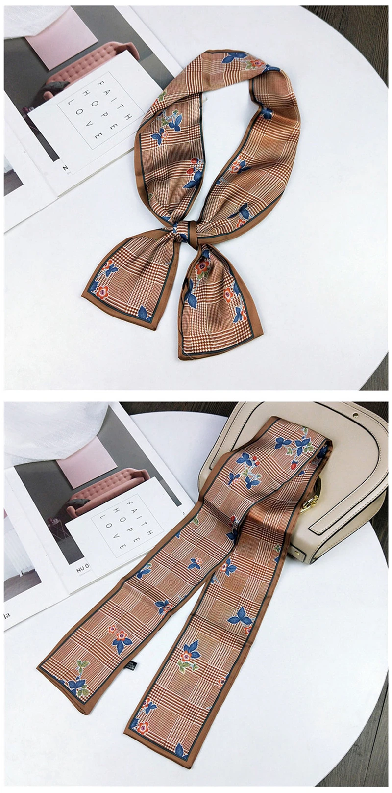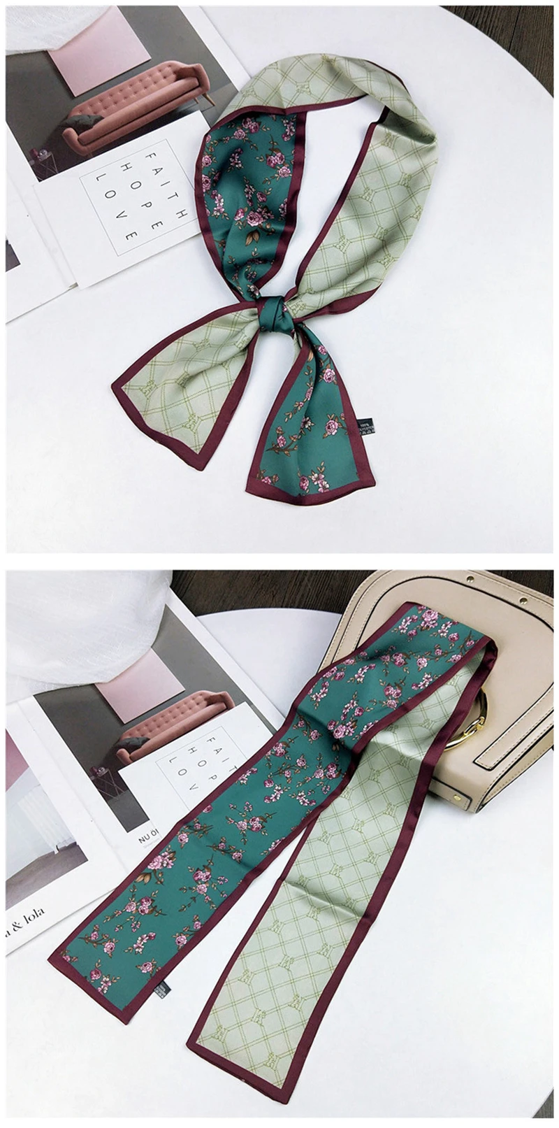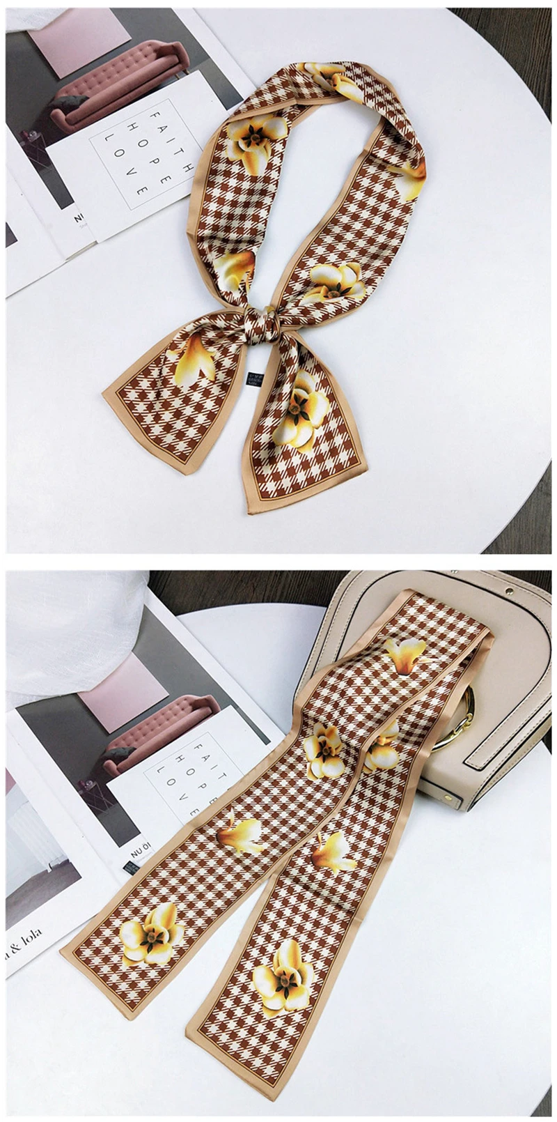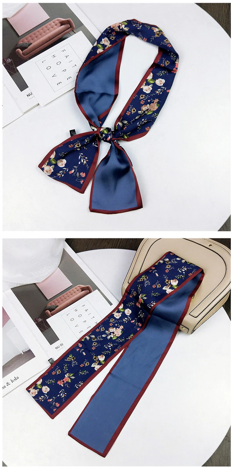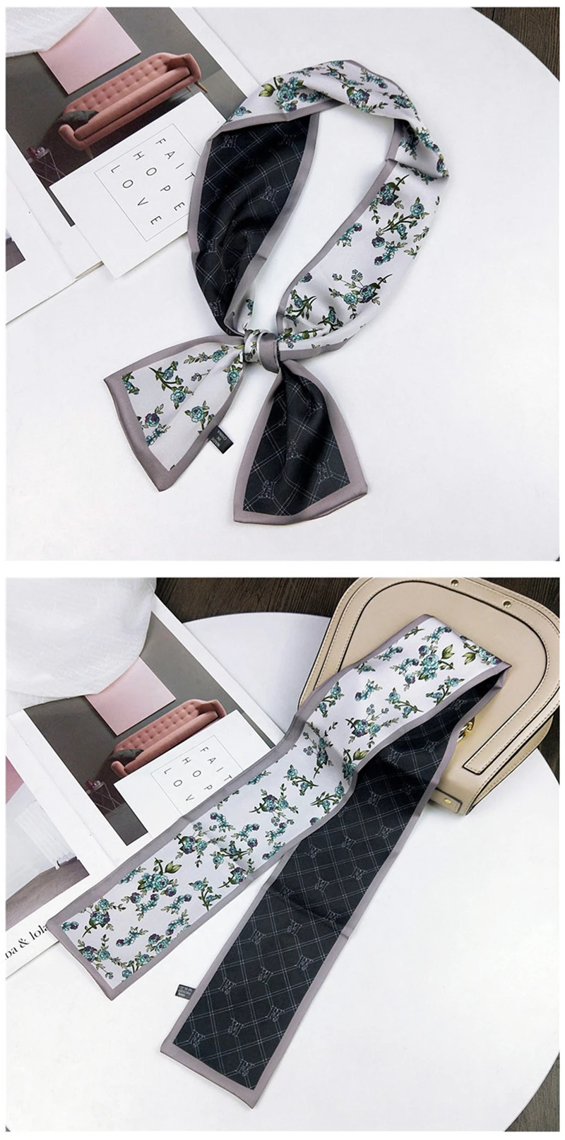 Модные двусторонние боксеры с цветами, длинный шарф, шелковый шарф, Женская Корейская версия для весны и осени, универсальные ленты на запястье
