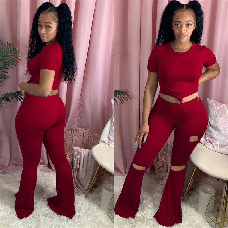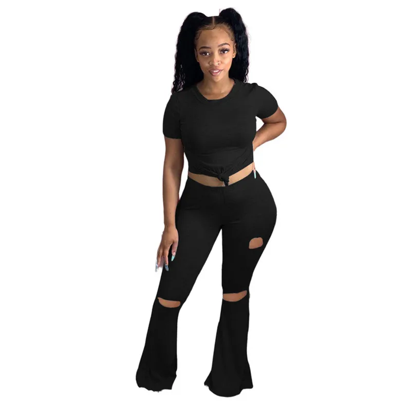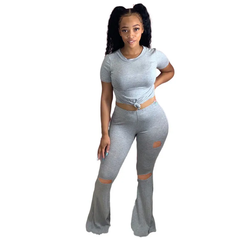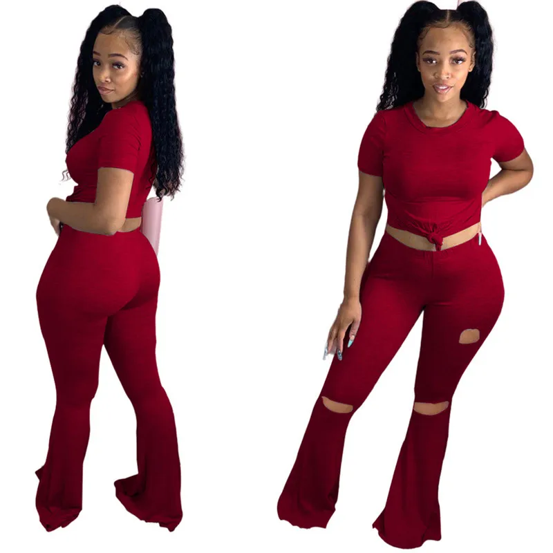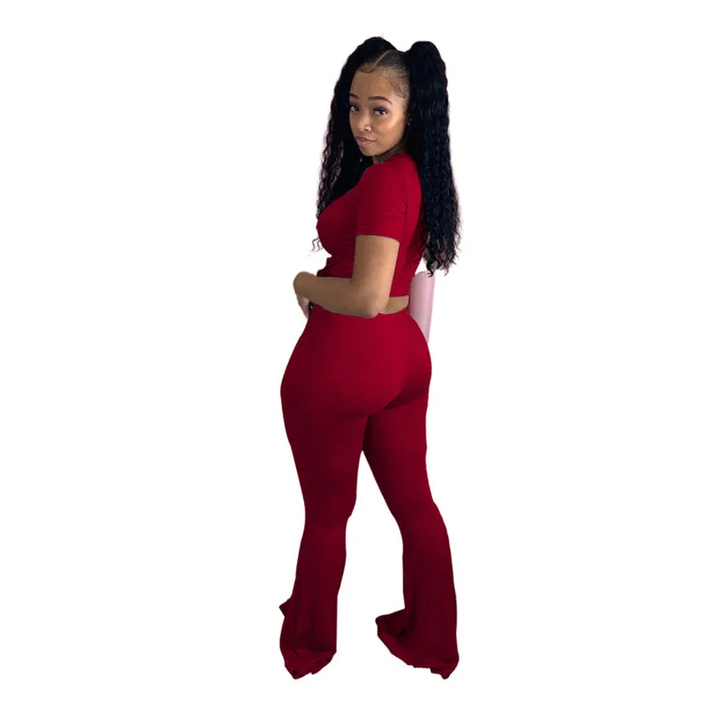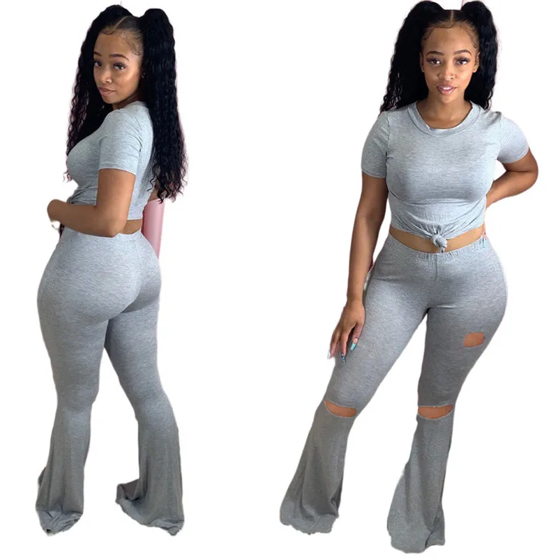 Женский комплект из двух предметов Adogirl, футболка с коротким рукавом, укороченный топ с расклешенными брюками, Модный женский спортивный костюм