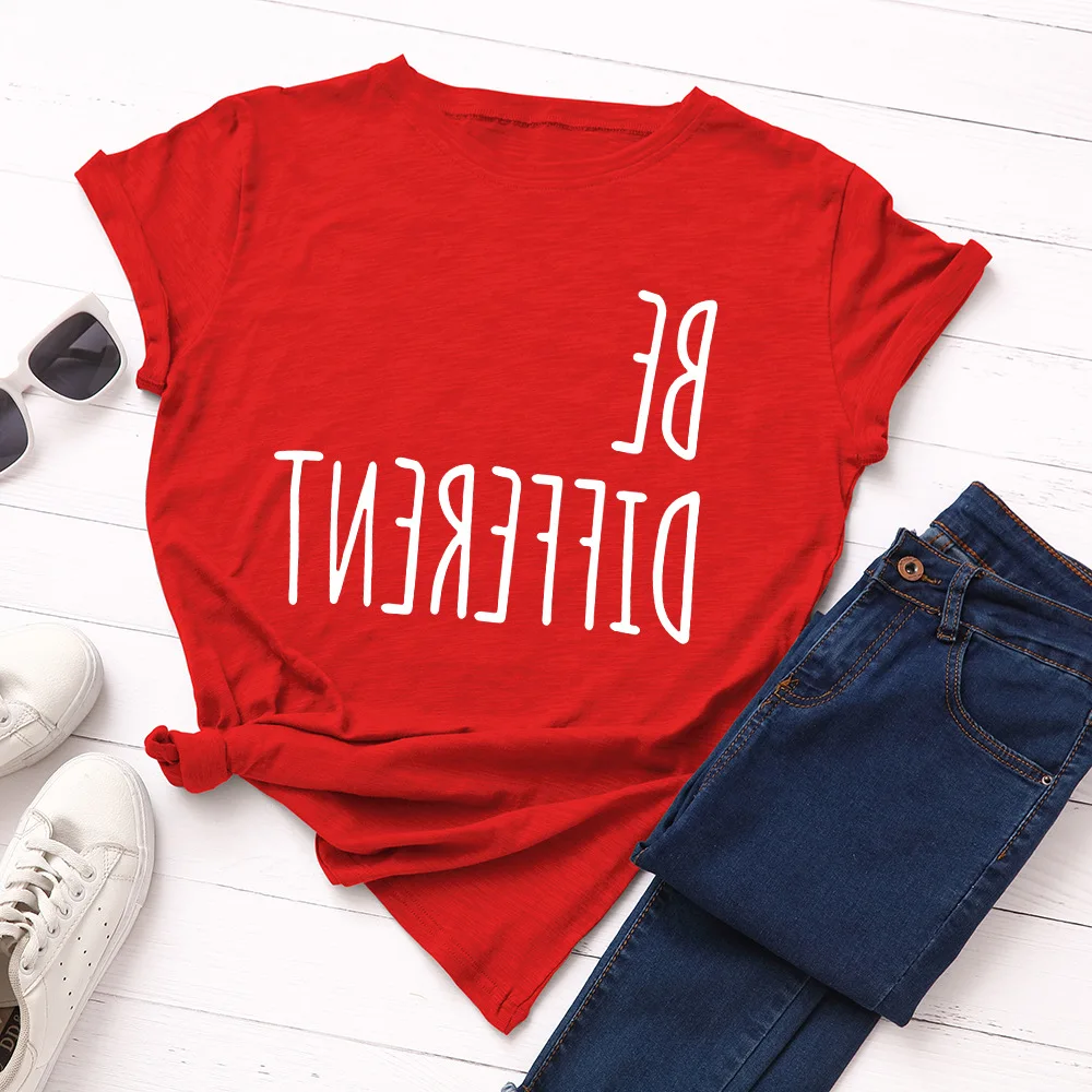 Футболка женская с забавным принтом букв, хлопковая Свободная Повседневная рубашка с коротким рукавом, уличная одежда, лето