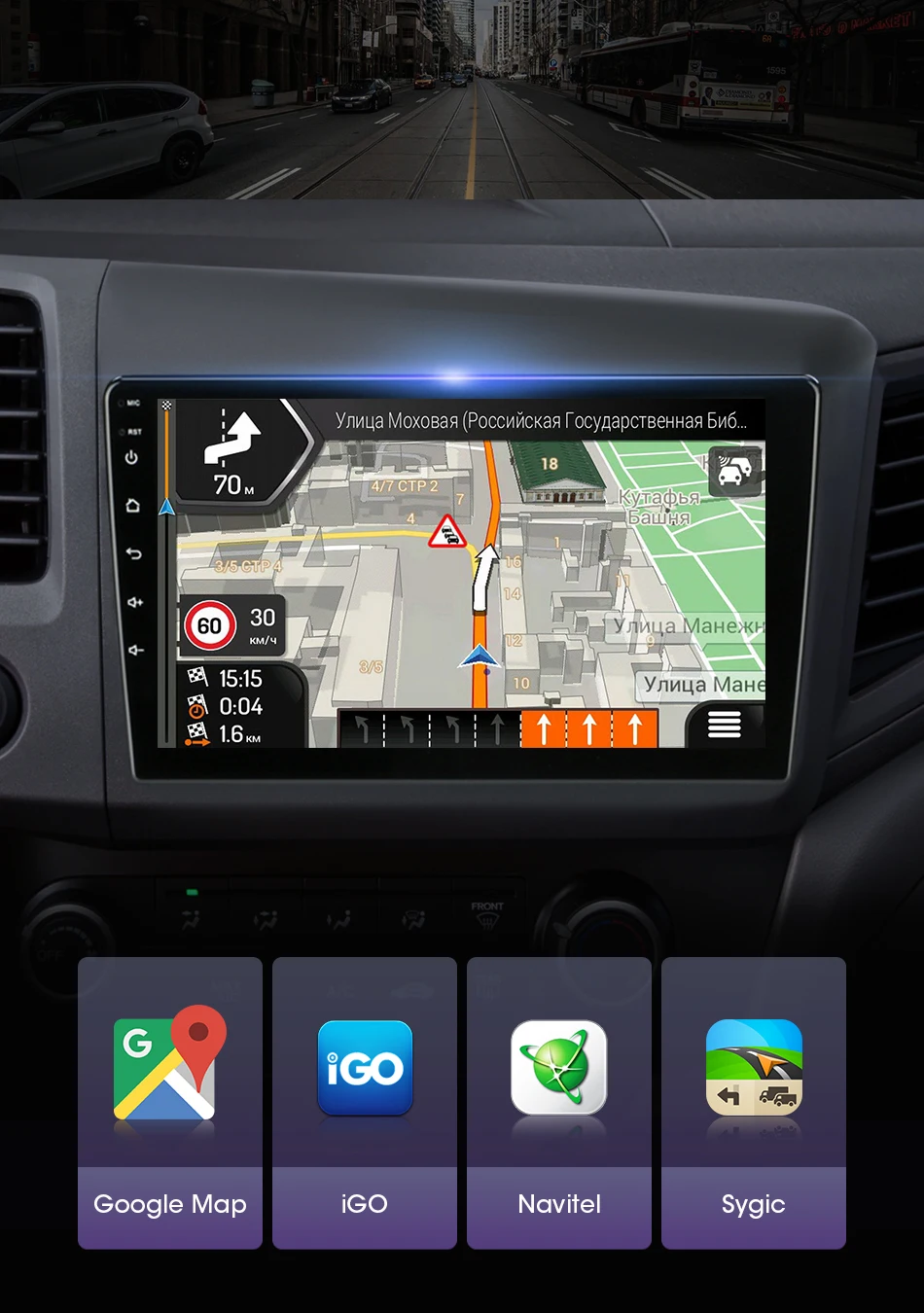 Поддерживает почти все приложения карты. Перед отправкой ваших любимых продуктов, мы установим для вас последнюю автономную карту вашей страны, и карта будет обновляться через регулярные промежутки времени. Конечно, вы также можете использовать онлайн-карты.