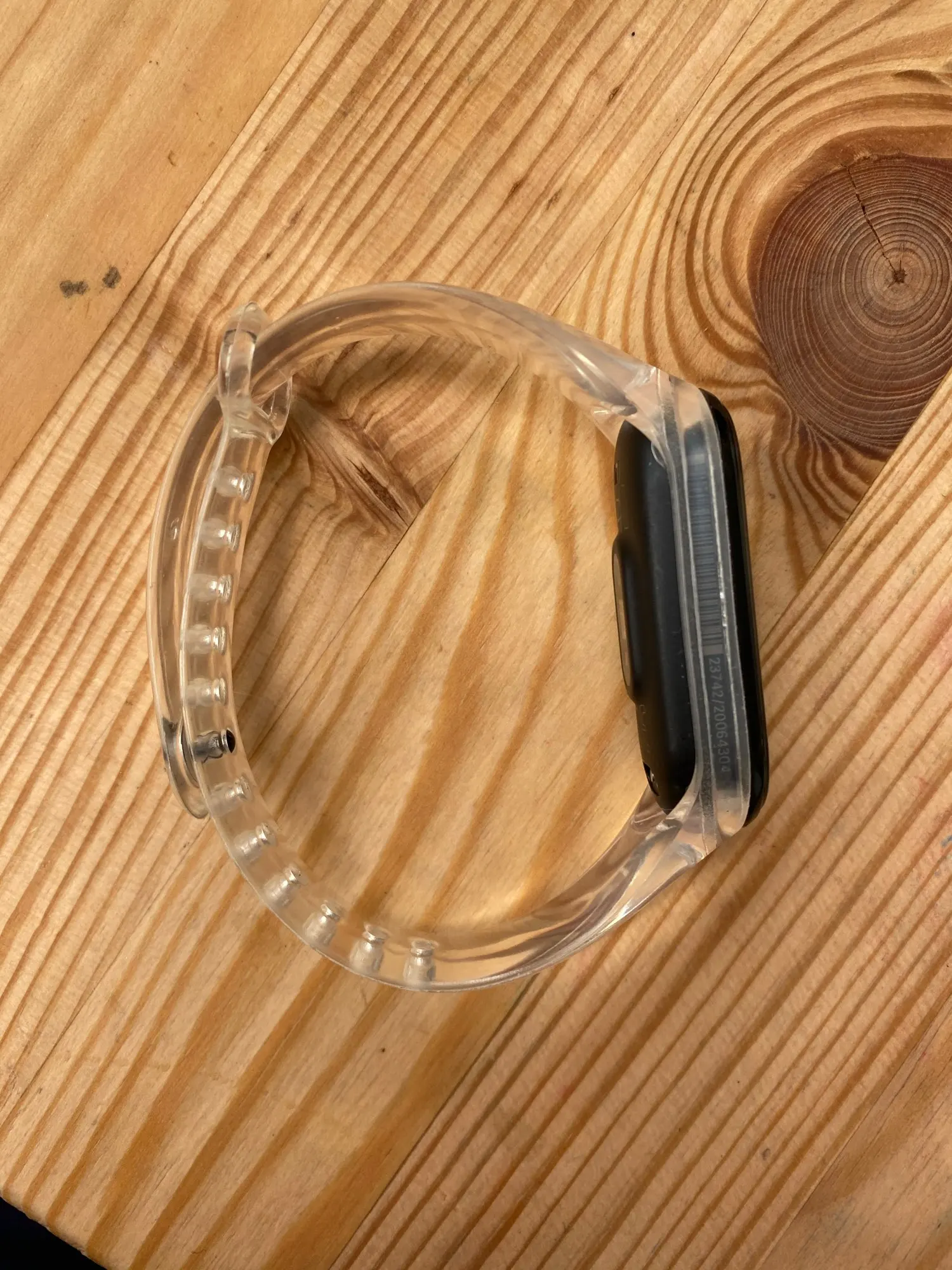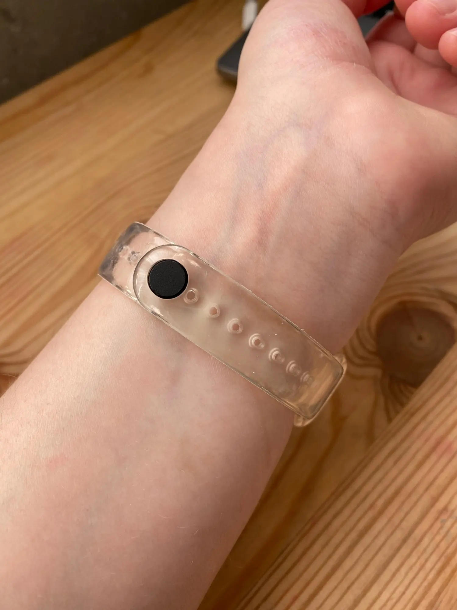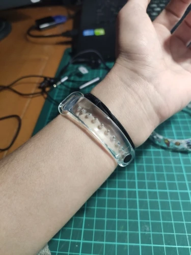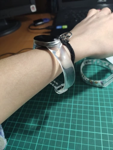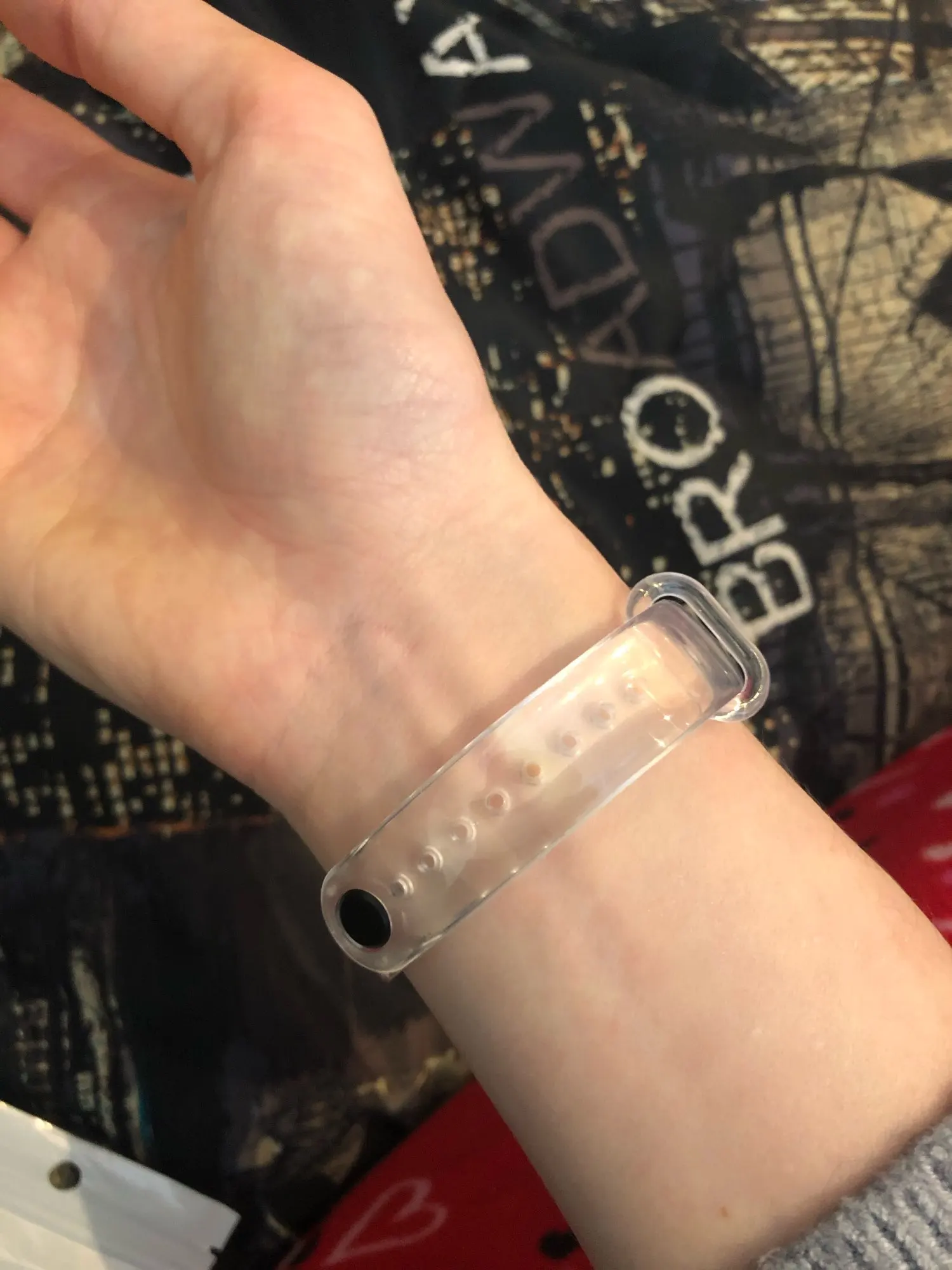 Классный браслет. Подошел для mi band 4. Приятный на ощупь. Не острый. Рука под ним преет как и под другими. Цельный выступ для насадки часов. Не оторвется если вынимать. Со временем пожелтеет.