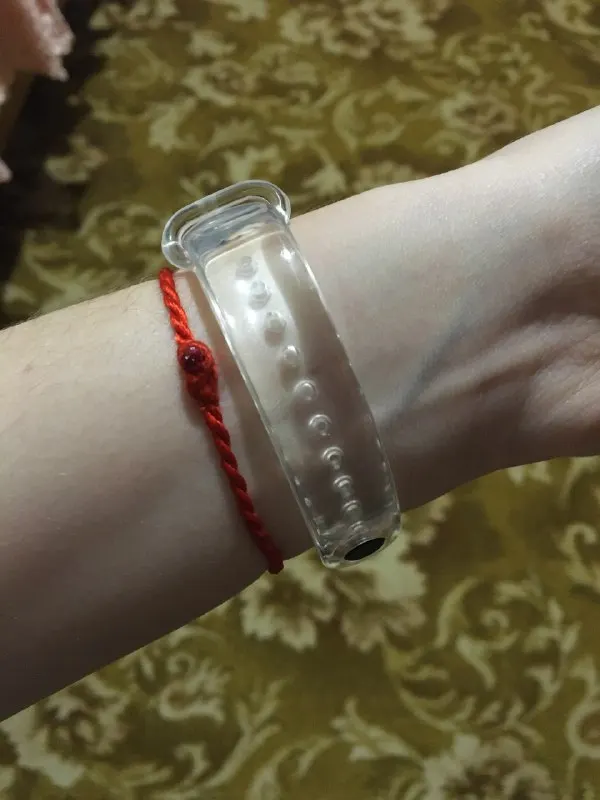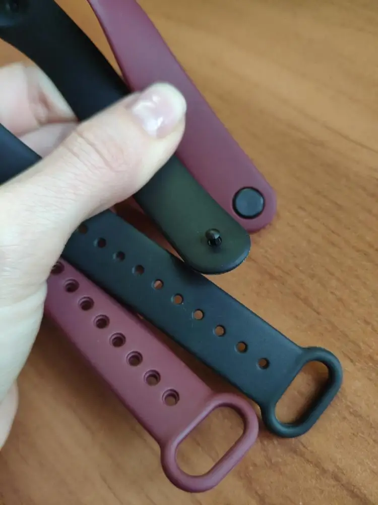 Заказывала два ремешка, черный и бордовый. Бордовый очень красивый, винный цвет. Пришли в объединенной посылке за две недели до Сибири. Каждый браслет в индивидуальном зип-пакетике, удобно для хранения. Качество отличное. На мою худую руку приходится застегивать на самую последнюю дырочку. Капсула МиБенда в ремешке сидит очень, вот прям ОЧЕНЬ плотно, еле вытащишь. Потому что внутри гибкая пластмассовая вставка (на черном браслете отливает белым цветом, на бордовом прозрачная), которая совершенно не растягивается. Поэтому капсула сидит плотно и чтобы вытащить, нужно приложить усилия. Сами браслеты добротные, матовые. По крайней мере черный в сравнении с оригиналом точно показался мне более матовым. К покупке рекомендую.