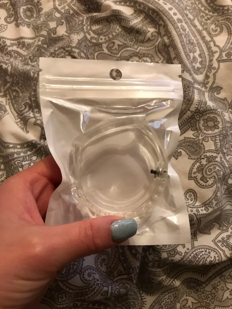 Браслеты классные. Пришли каждый в своём, в общий серый пакет. Выглядят отлично, на руке держатся хорошо. Прозрачный понравился больше всего! Сразу же его надела. Чтобы вытащить и вставить капсулу никаких сил прикладывать не нужно. Внутри нет этой жесткой окантовки, из-за которой в других браслетах не вытащить капсулу без потерь. Огромный плюс. Если не забуду, то дополню отзыв после двух недель носки.