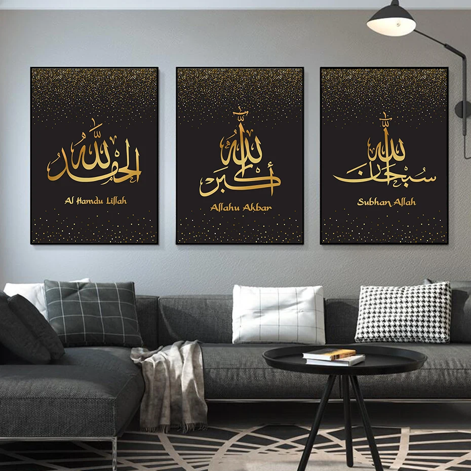 Золотая мусульманская каллиграфия инша Аллах, мусульманские постеры...