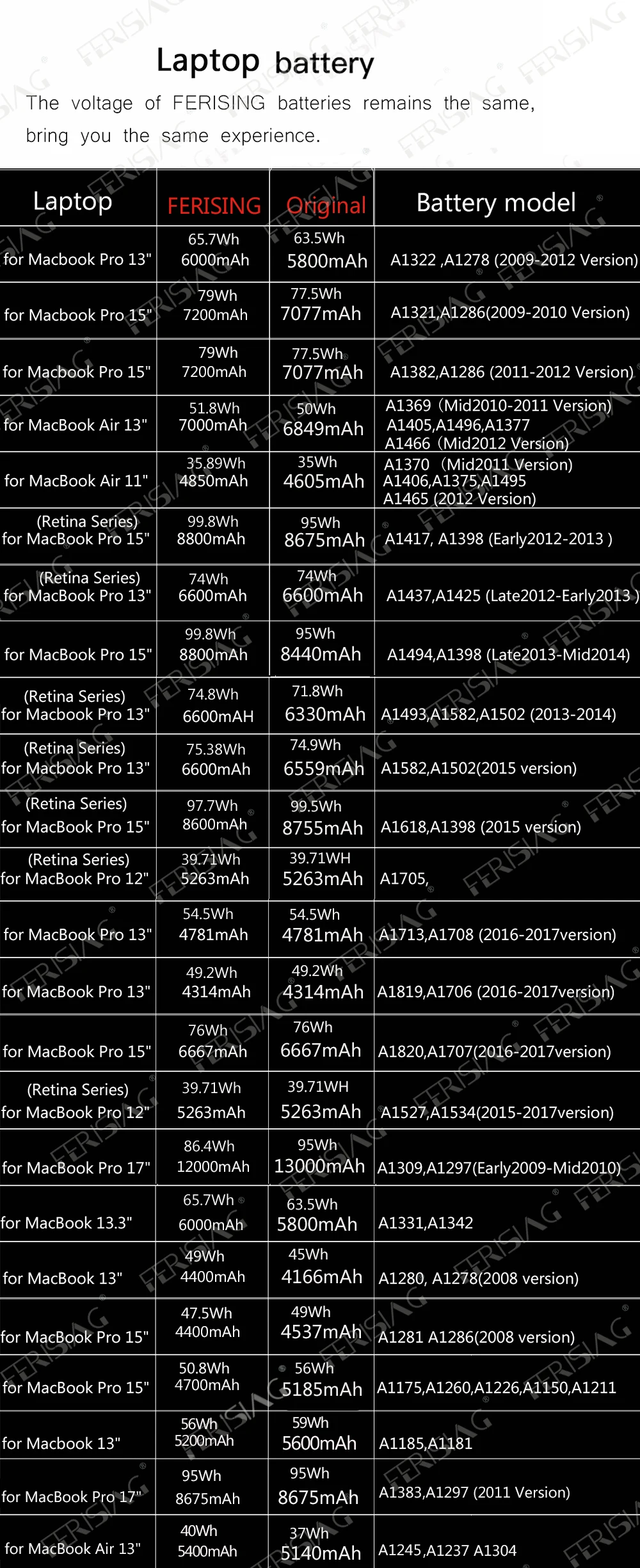 FERISING 100% Real Capacity13000mah /95Wh 7.2V
