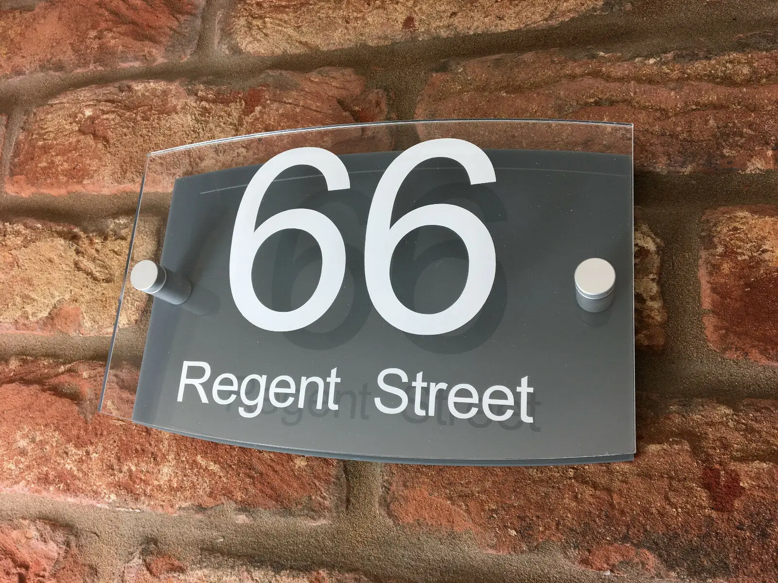 Настройте табличкутабличку с номером дома. Современный серый и прозрачный Фотофон