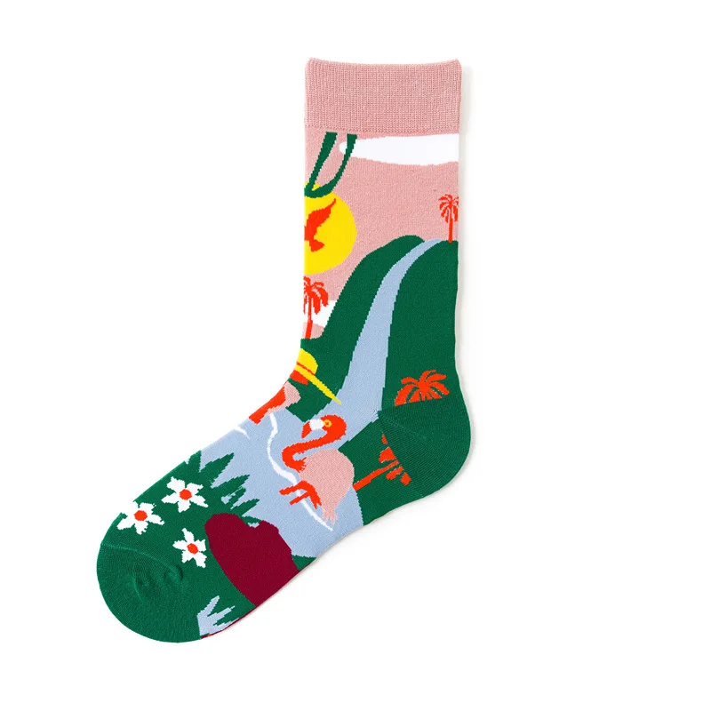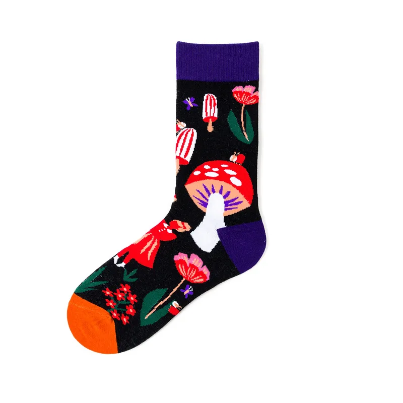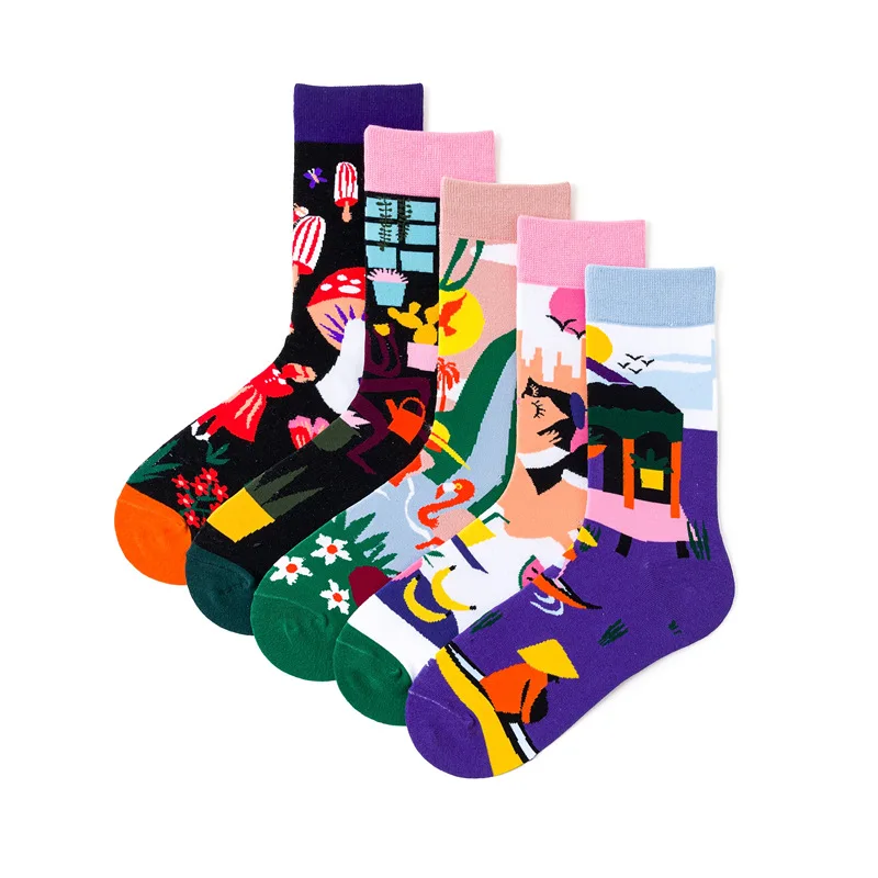 Носки хлопковые для мужчин и женщин, толстые дышащие удобные, с мультяшным принтом, в стиле преппи, осень-зима