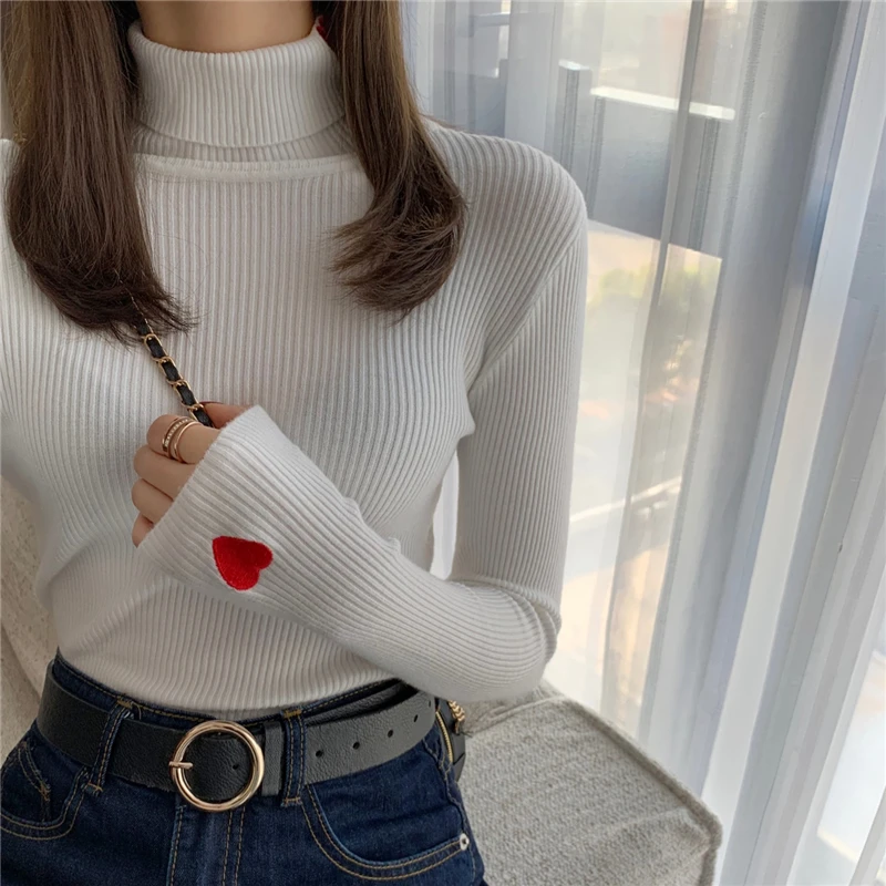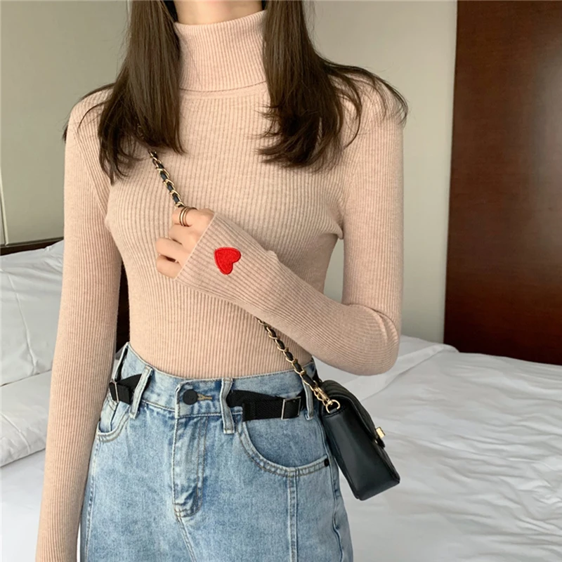 2021 зимний свитер с высоким воротом, Женский вязаный ребристый пуловер, Hiver Truien Dames, тонкий джемпер, мягкий теплый пуловер, топы Tmbroidery