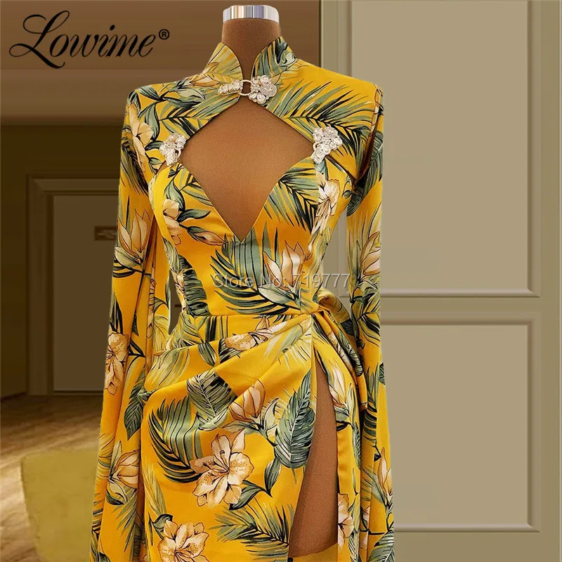 Длинное вечернее платье, желтое, с жакетом, с цветочным принтом