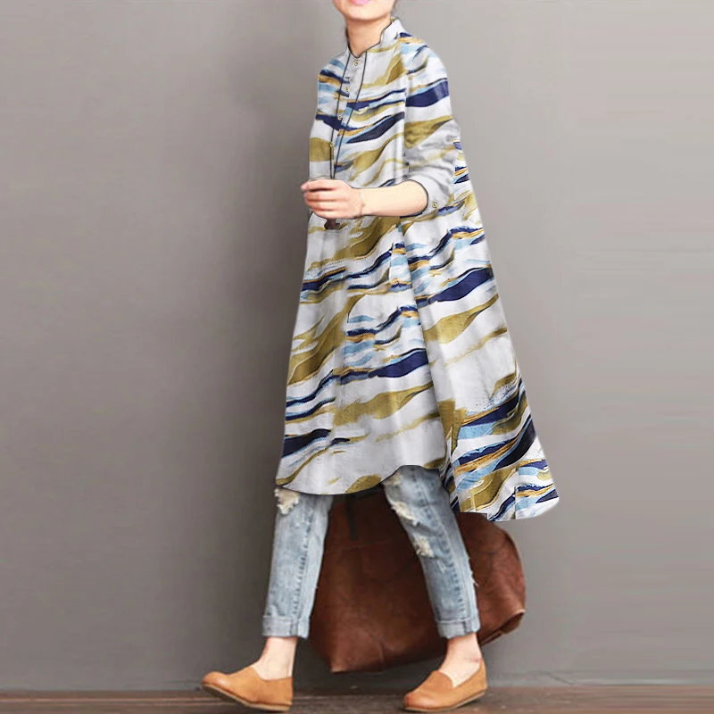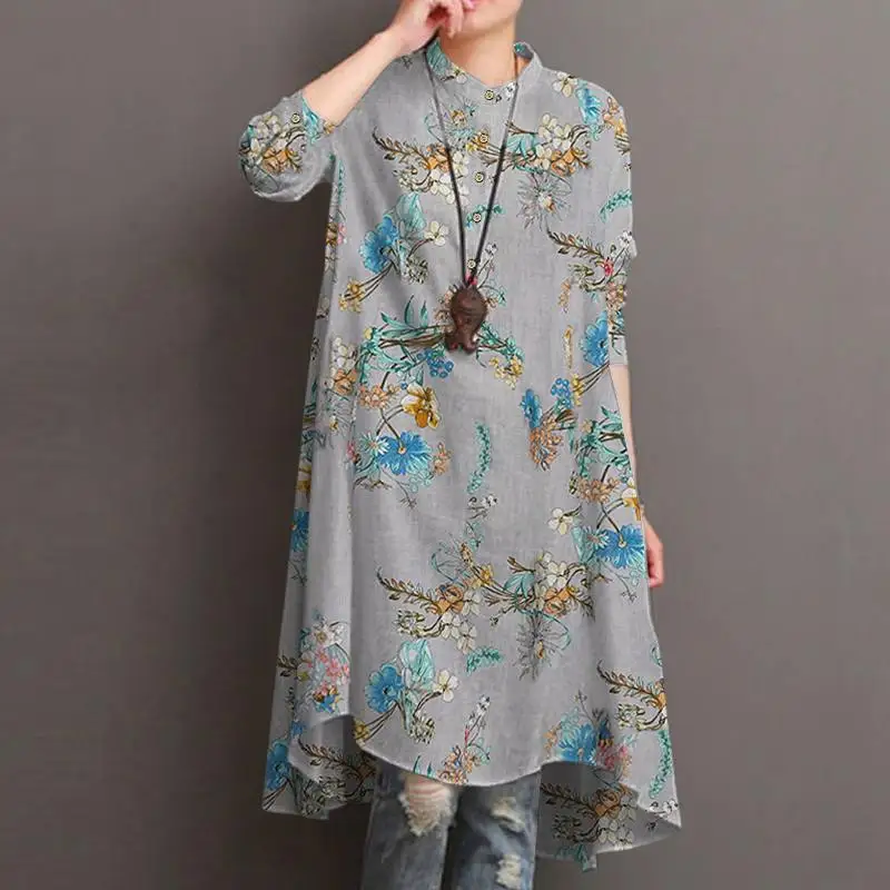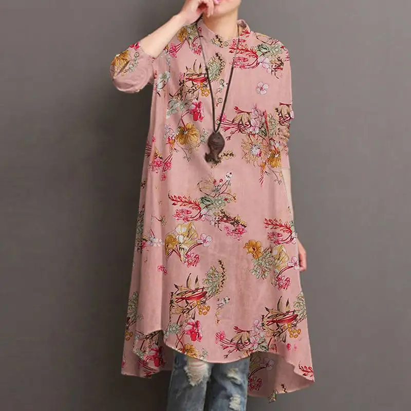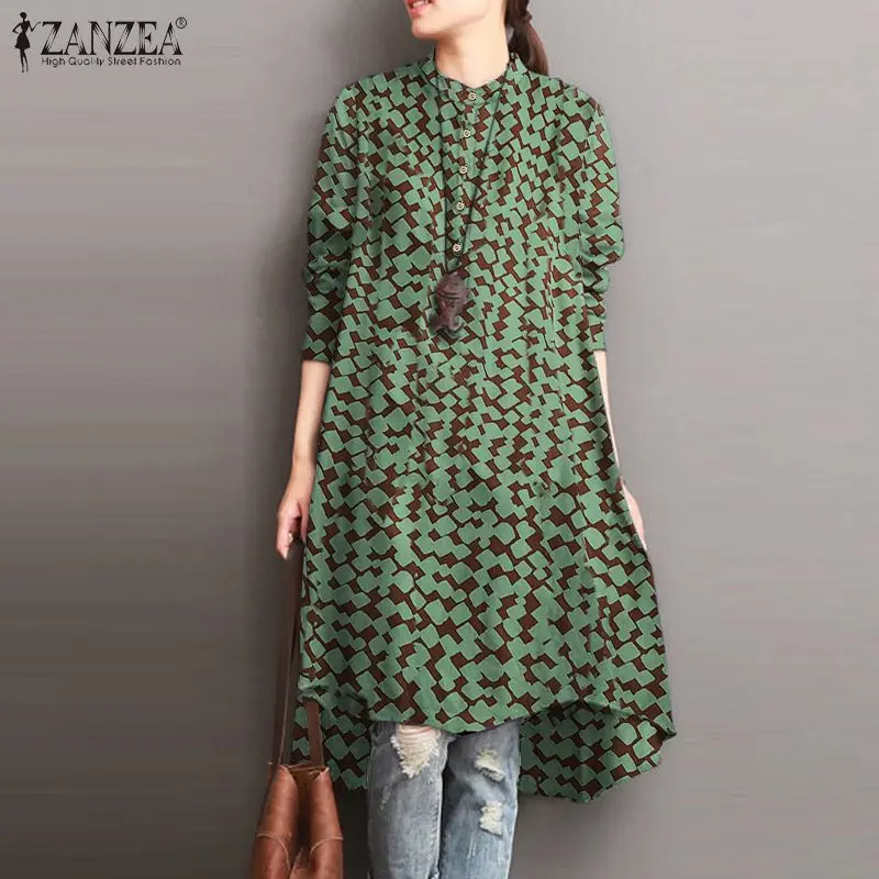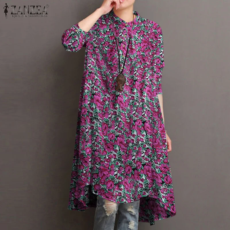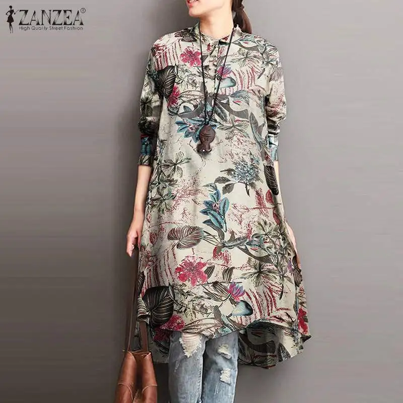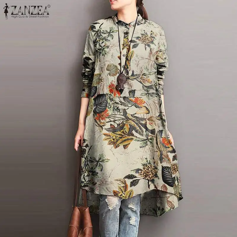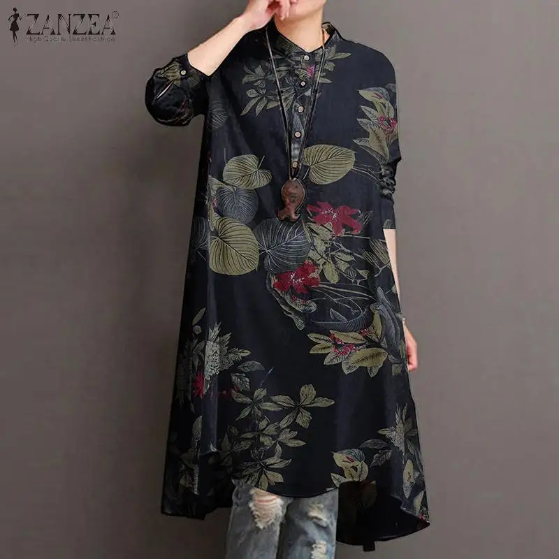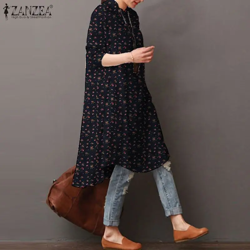 Осенние женские блузки с цветочным принтом ZANZEA 2022, элегантная рубашка, повседневные Длинные Топы с длинным рукавом, Женская туника с принтом