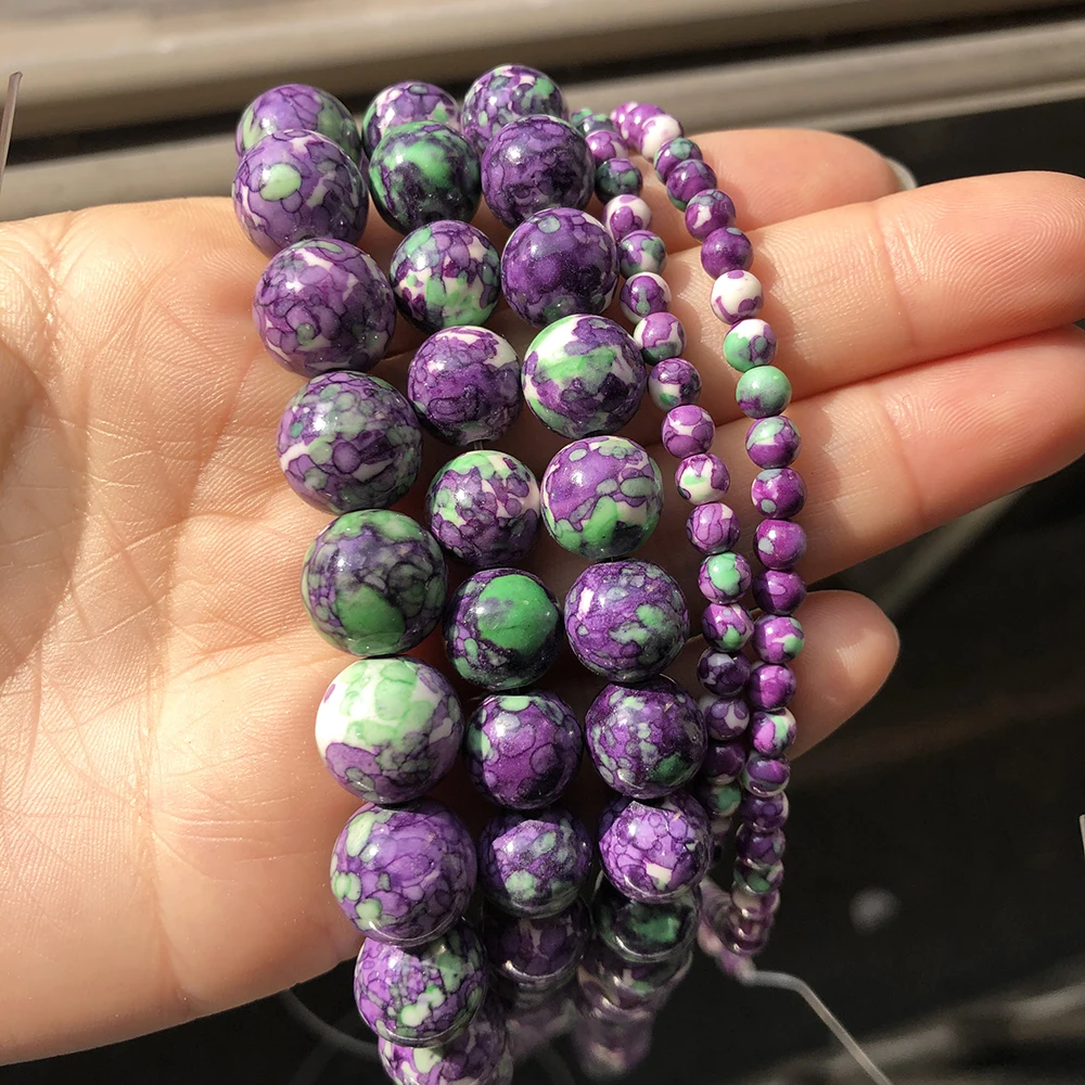 Натуральный камень, Фиолетовый Зеленый дождь цветок яшмы вокруг свободные бусины для изготовления ювелирных изделий 15''Inch 4681012 мм браслетов или бус своими руками