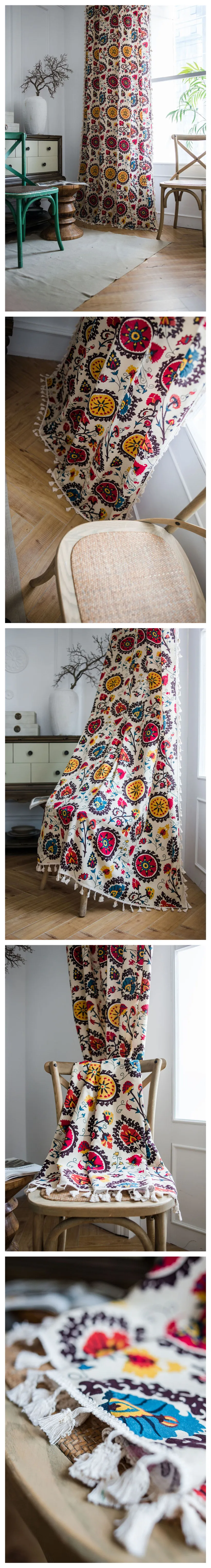 Многоцветная занавеска с кисточкой для гостиной, французские оконные жалюзи для спальни, эркера, богемная хлопковая льняная готовая занавеска