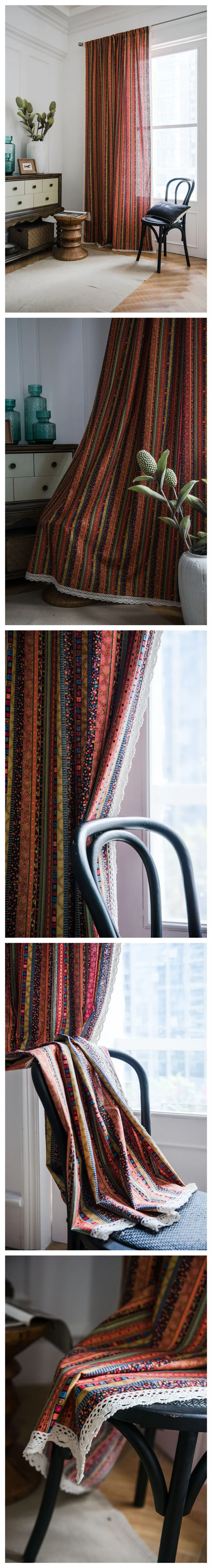 Богемные полосатые занавески с кружевными постельное белье из хлопк...