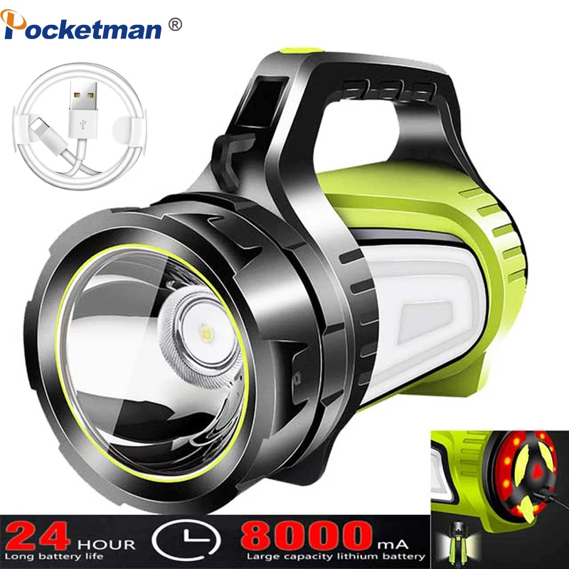 Мощный перезаряжаемый фонарик 100 Вт, светодиодный фонарик, водонепроницаемый, сверхдлительный фонарик с USB-выходом