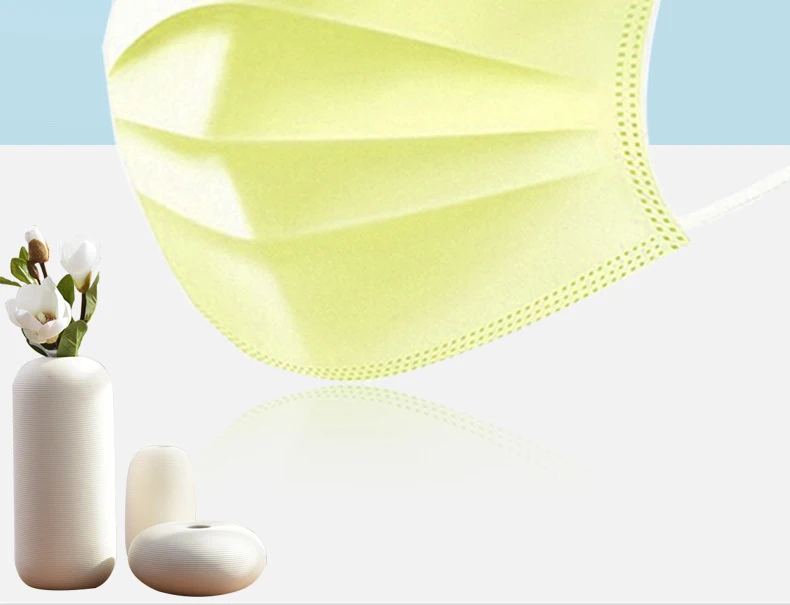 Одноразовая 3-слойная защитная маска из нетканого материала, желтая дышащая маска для рта с резинкой для ушей, дышащая маска для взрослых для лица