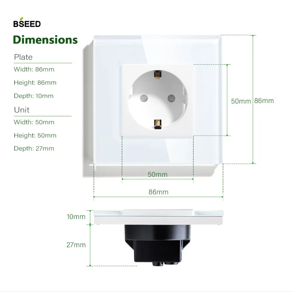Розетка настенная BSEED Mvava, с белыми, черными, серыми, зеркальными, стеклянными панелями, 86 мм, 16 А, 110-250 В