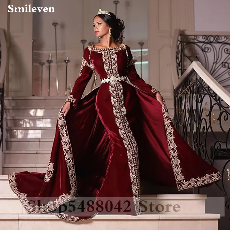 Smileven Бургундия каракоу алжирский кафтан Русалка Вечерние платья...