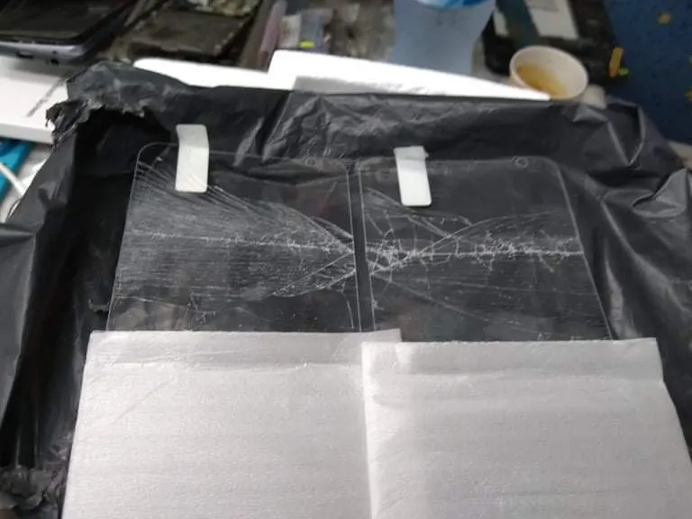 Пришло относительно быстро, в пакете коробка из пенопласта, слегка откололась грань, но товар не поврежден. Пока не пыталась клеить на экран, боязно, однако в комплекте есть три комплекта из влажной и сухой салфеток. В целом довольна, как резерв на непредвиденные обстоятельства - отлично.