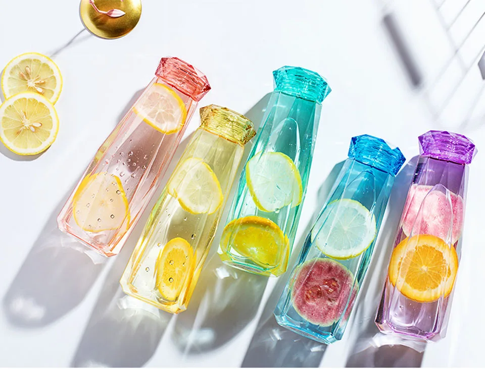 Прозрачные дизайнерские пластиковые бутылки для воды с кристаллами, устойчивая к падению Студенческая бутылка для воды, бутылки для напитков 620 мл