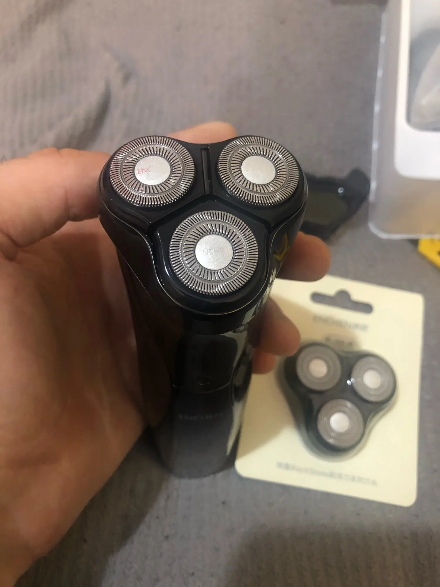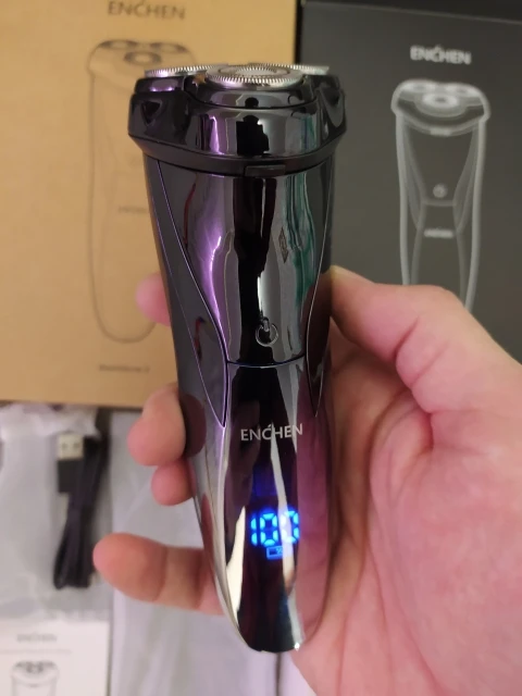 отличная бритва. не знаю почему,но бреет лучше чем старый enchen. на фото есть для сравнения. не разбирал,но написано,что у этого заряд на 2 часа,а у старого на один. хоть и написано,что движки по 5вт,но скорее всего либо старый слабее,либо новый мощнее.в руке лежит очень удобно.в целом мне очень понравилось