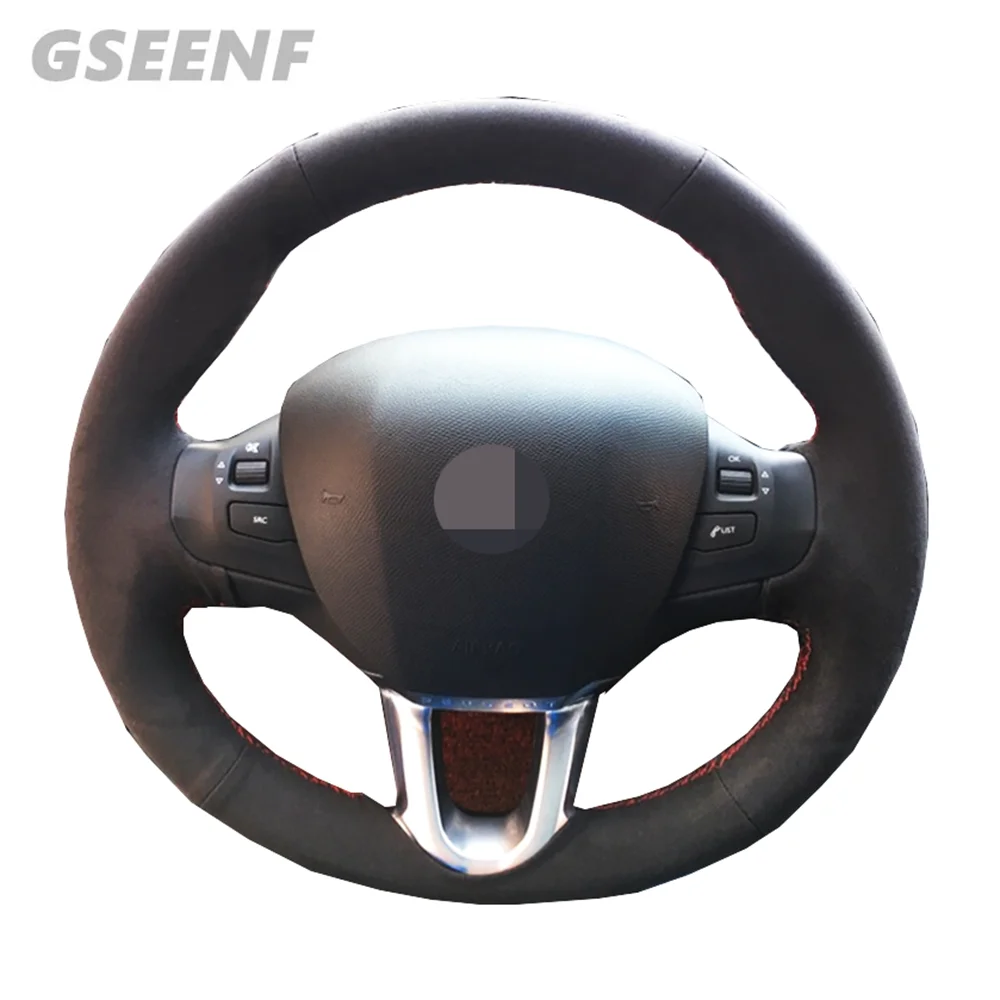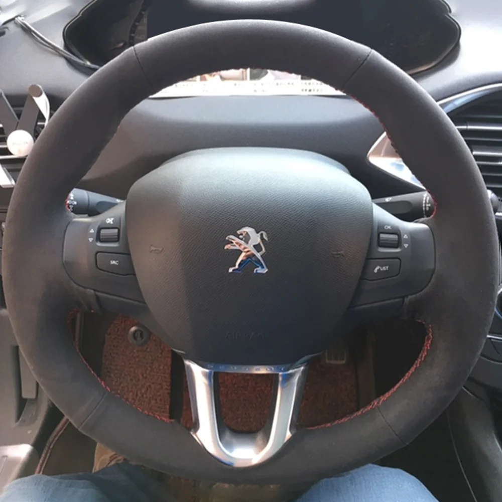 Автомобильные аксессуары, чехол на руль для Peugeot 208 2011-2019 Peugeot 2008 2013-2019, черный, ручная прошивка, удобная замша