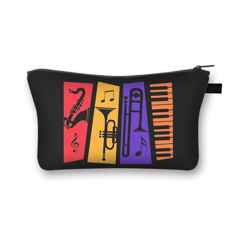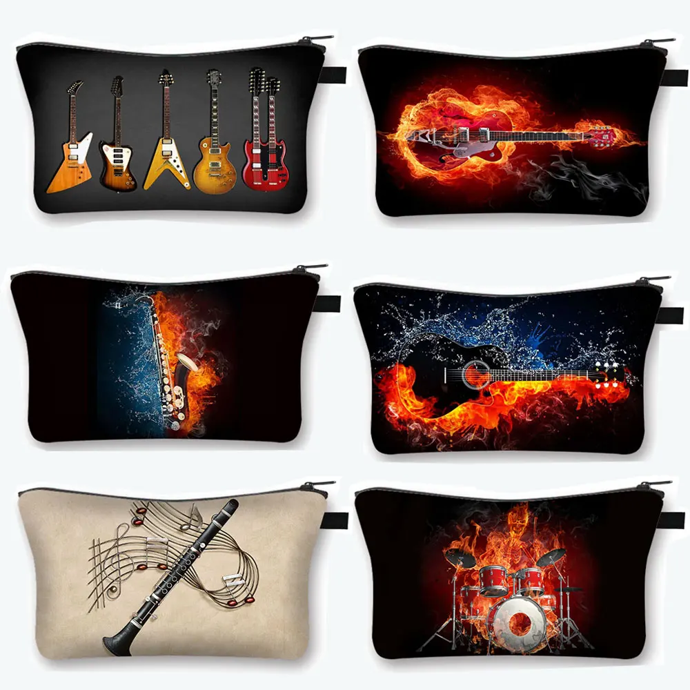 Косметичка в форме пламени для музыкальных инструментов Rock, Джазовый латунный саксофон, женская косметичка, косметичка для девочек, хипстерский косметический чехол для девушек