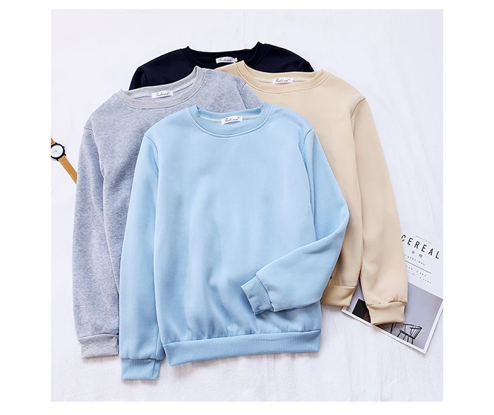 Свитшот Jocoo Jolee женский флисовый с длинным рукавом, повседневная утепленная толстовка с круглым вырезом, винтажный корейский топ в стиле Харадзюку, осень