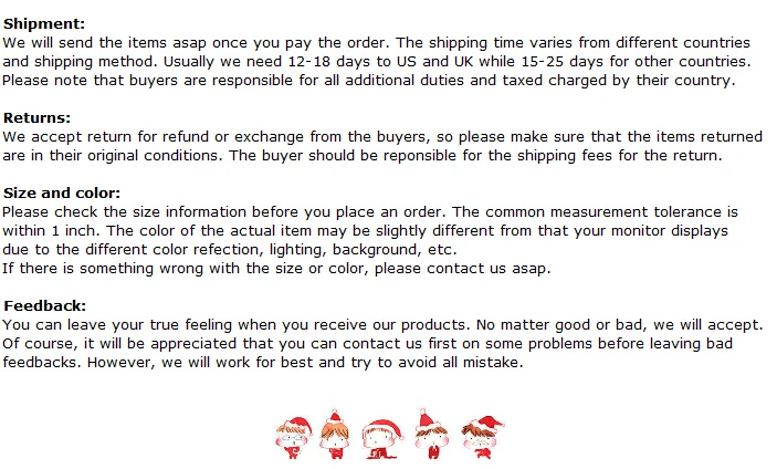 Все размеры этого платья изготавливаются на заказ и не отправляются с нашего склада. Кроме того, он носится рядом с кожей, поэтомуМы не принимаем возврат. Извините за это. Это гарантирует, что каждое платье, которое вы получите, является 100% новым и не носится. Пожалуйста, внимательно проверьте размер перед оформлением заказа. Если вам нужна помощь, пожалуйста, просто отправьте мне сообщение.