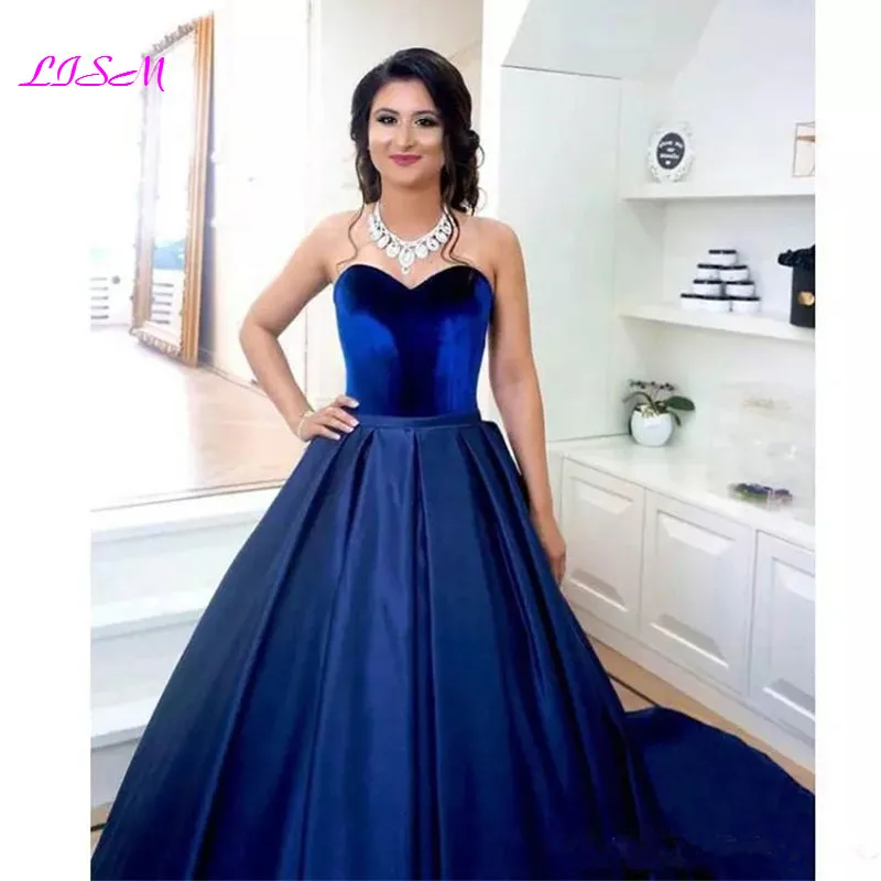 Синее атласное платье для выпускного, ТРАПЕЦИЕВИДНОЕ, с карманами