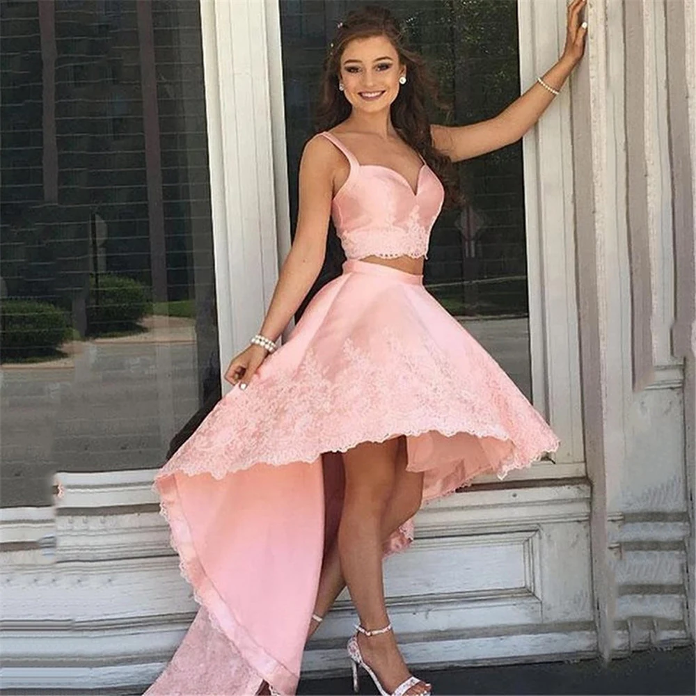 Короткие платья для встречи выпускников с высоким и низким вырезом, элегантные вечерние коктейльные платья из двух частей на бретелях-спагетти с открытой спиной