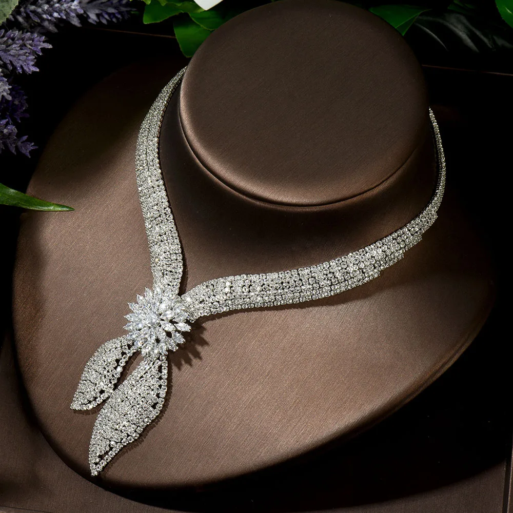 HIBRIDE Роскошный прозрачный кристалл циркония серьги и ожерелье на...