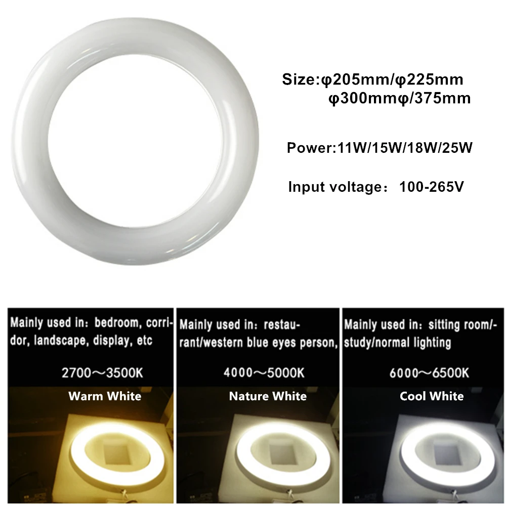 1) светодиодный круглый чип 2 ряда имеет 205 мм, 225 мм, 300 мм 3 вида размеров для выбора 2) 1 ряд светодиодный чип циркулярная трубка 205 мм, 225 мм, 300 мм, 375 мм 4 вида размеров на выбор 3) Все светодиодный кольцевая трубка с внутренним светодиодный драйвер, Вход напряжение 100-265VAC 4) Наш светодиодный Циркулярный тюбик не может работать с балластом или стартером, необходимо удалить или обойти балласт и стартер перед установкой