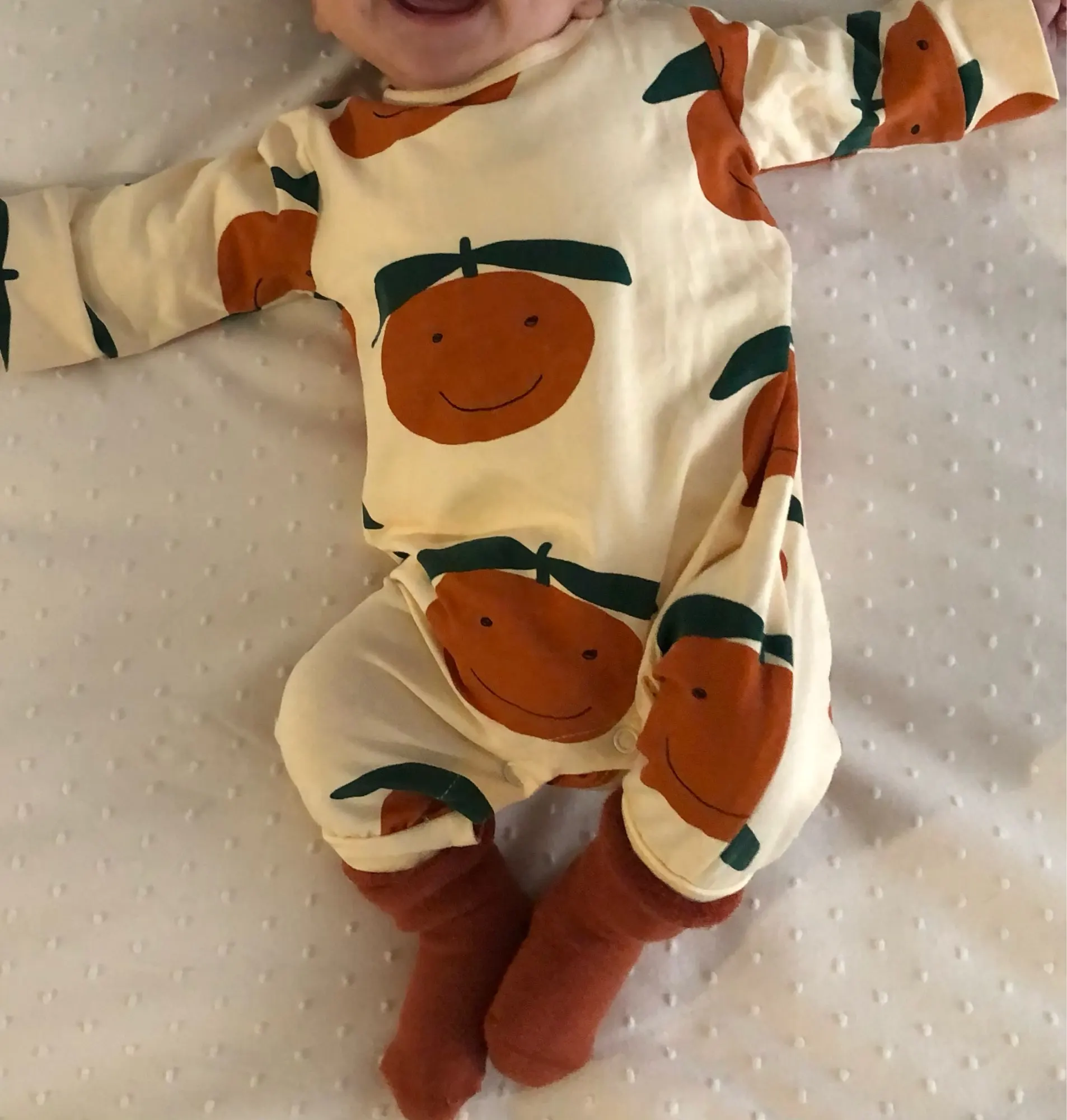 Долго смотрела на бодик с мандаринами, он такой забавный. Качество отличное, сшито все аккуратно, и сама ткань приятная на ощупь. Рисунок пропечатан хорошо, все цвета и формы на месте. Полностью довольна! Буду обязательно заказывать ещё :)