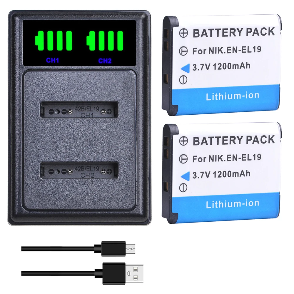 EN-EL19 ENEL19 EL19 Батарея + светодиодный двойной Зарядное устройство для цифровой камеры Nikon Coolpix S32 S33 S100 S2500 S2750 S3100 S3200 S3300 S3400 S3500 S4100