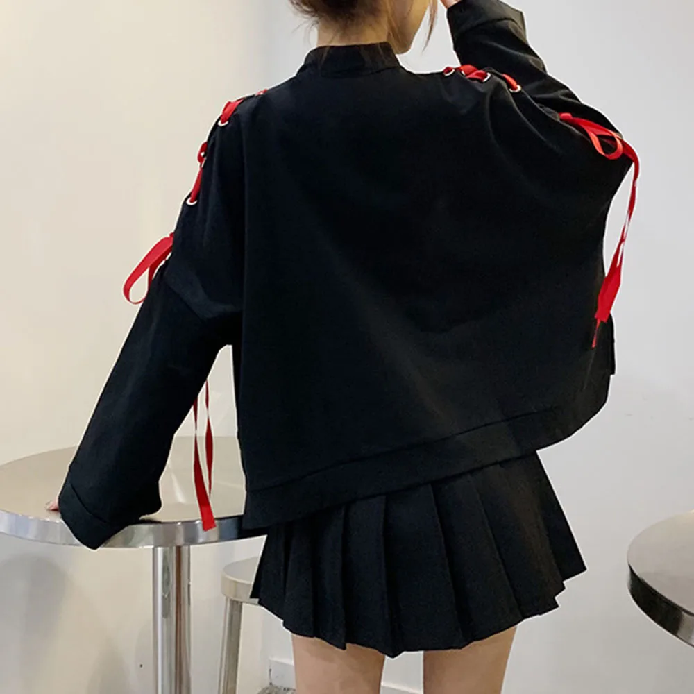 Rosetic, на молнии, дизайнерская, Готическая Женская толстовка, 2020, с капюшоном, плюс размер, свободный свитер, пуловер, уличная одежда, черные толстовки с капюшоном, на шнурке