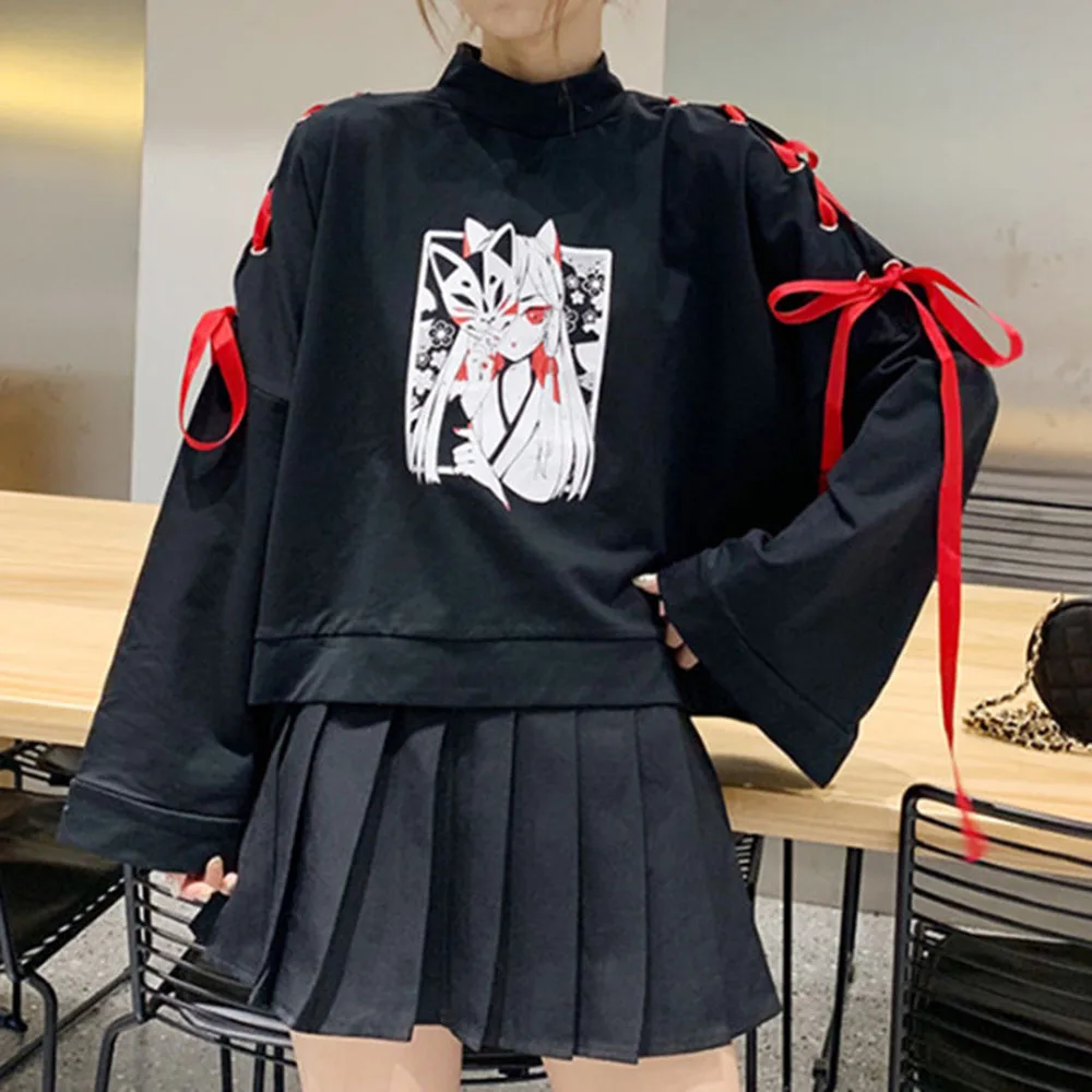 Повязка, японская винтажная толстовка с капюшоном в стиле Харадзюку...