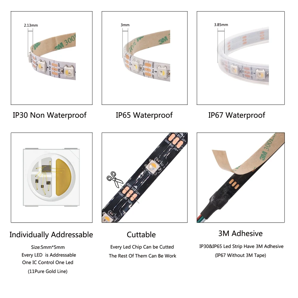 5 в постоянного тока SK6812 RGBW (аналогичный WS2812B) 4 в 1 3060144 светодиодовпикселейм индивидуальная адресная IC Светодиодная ленсветильник 30IP65IP67