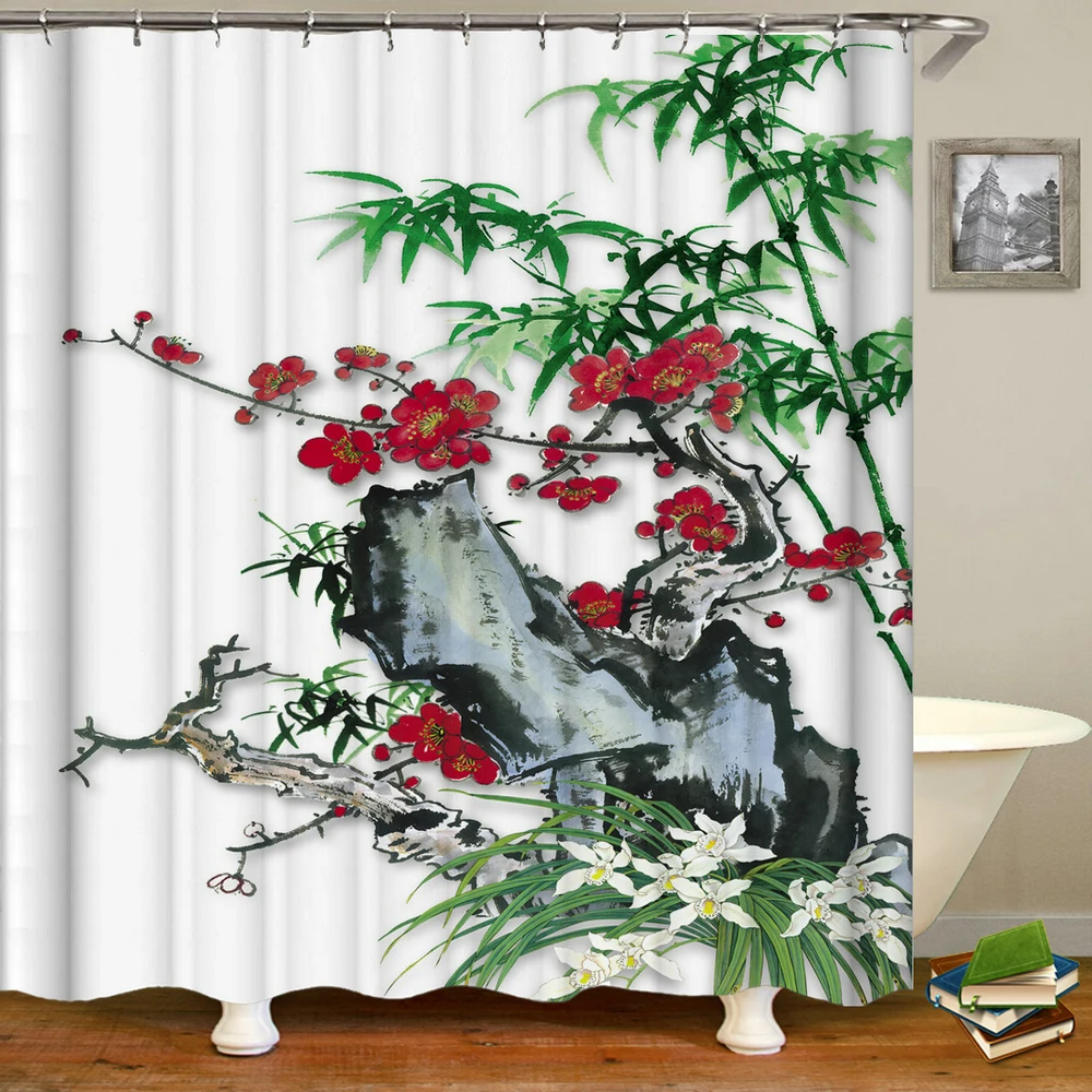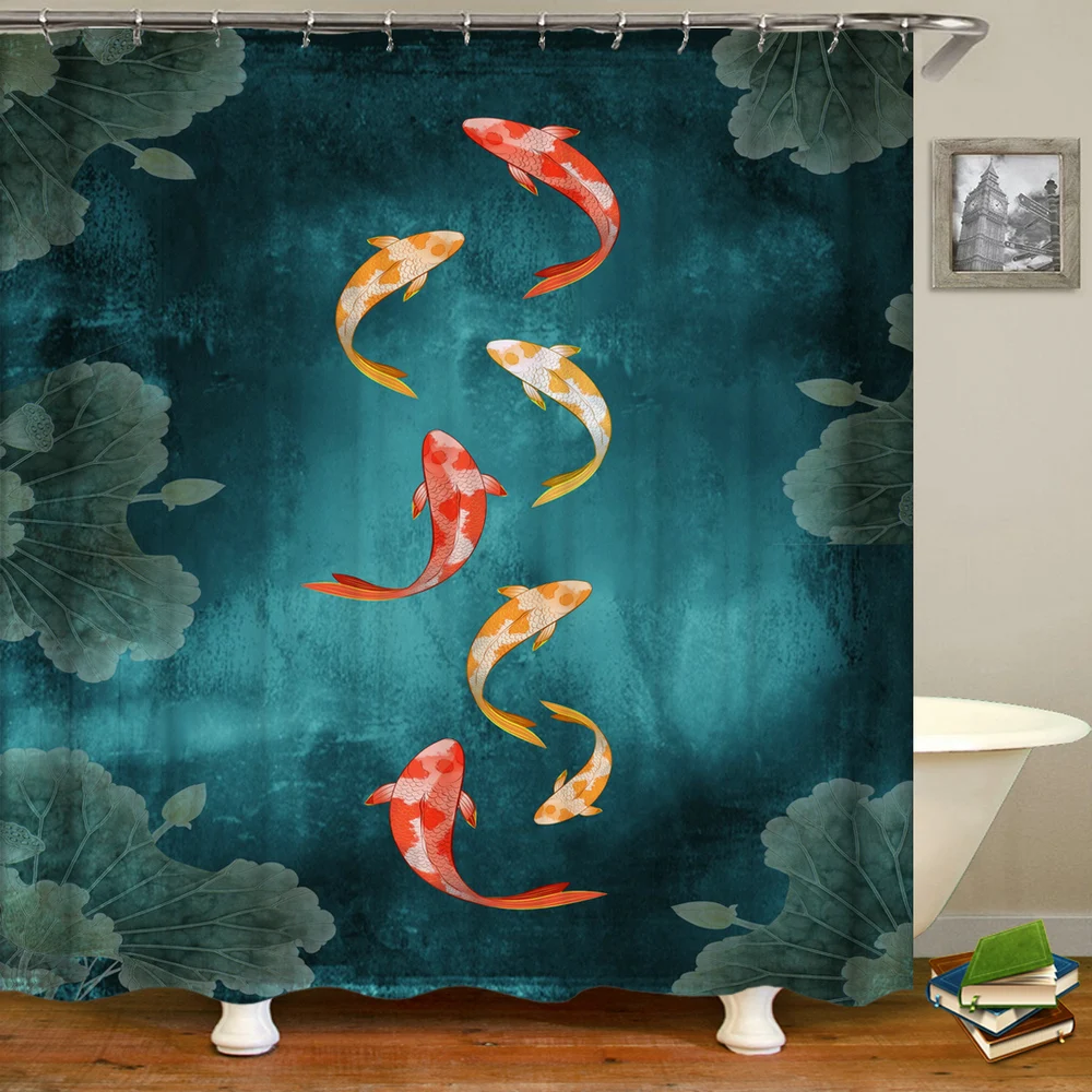Китайские занавески для душа с цветочным принтом и рыбками, занавески для ванной, водонепроницаемые занавески для ванной с крючками, 3d печатью, декоративные занавески для ванной
