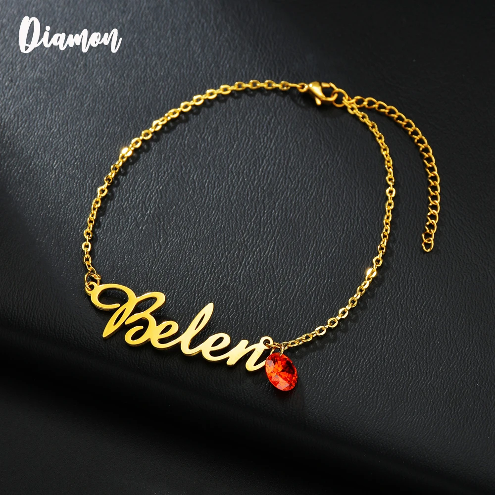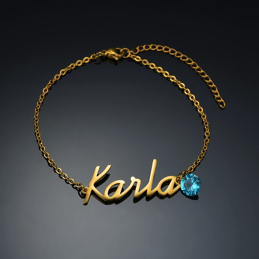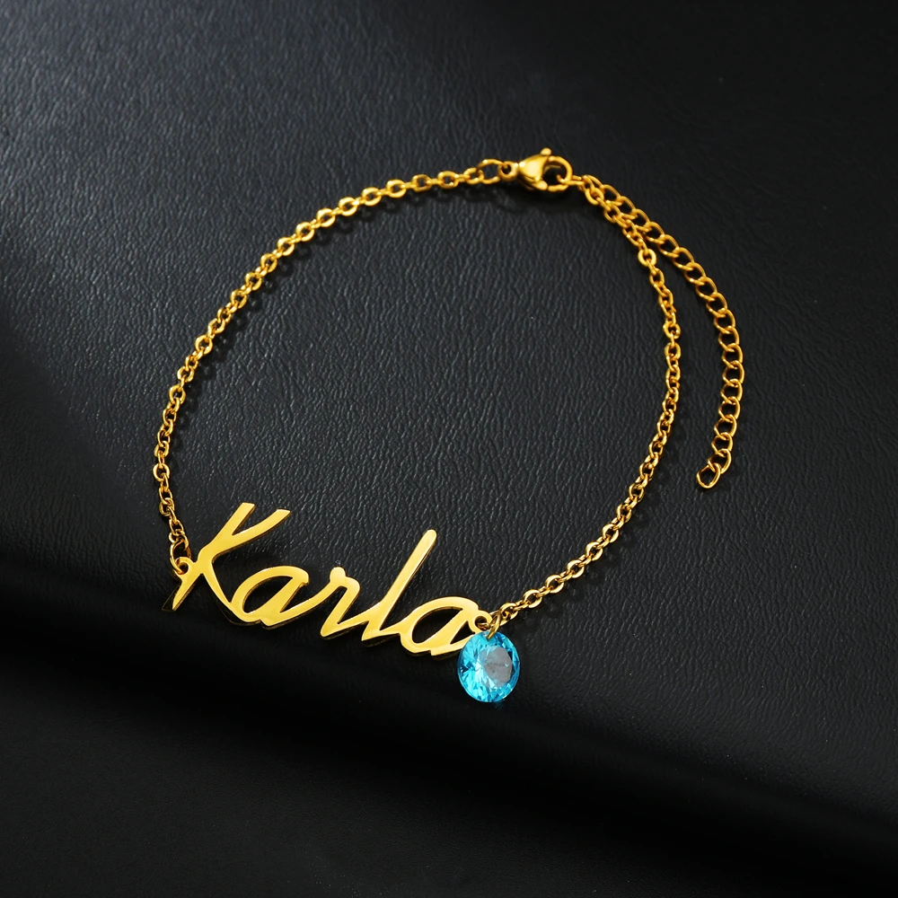 Браслет женский из нержавеющей стали с надписью и камнем по месяцу рождения