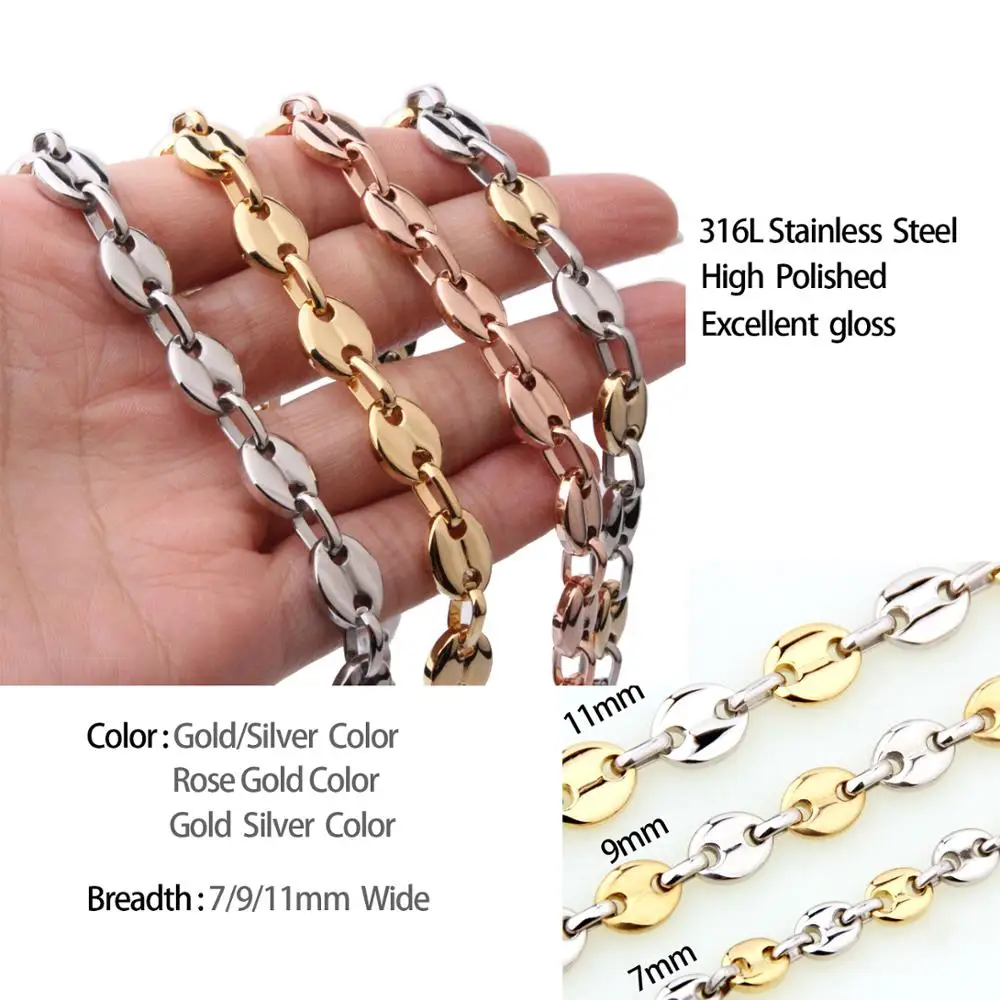 Tisnium 11 мм модное ожерелье для мужчин и женщин форма кофейных зерен семена дыни цепь из нержавеющей стали чокер ссылка подарок оптовая продажа