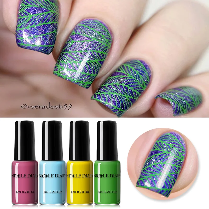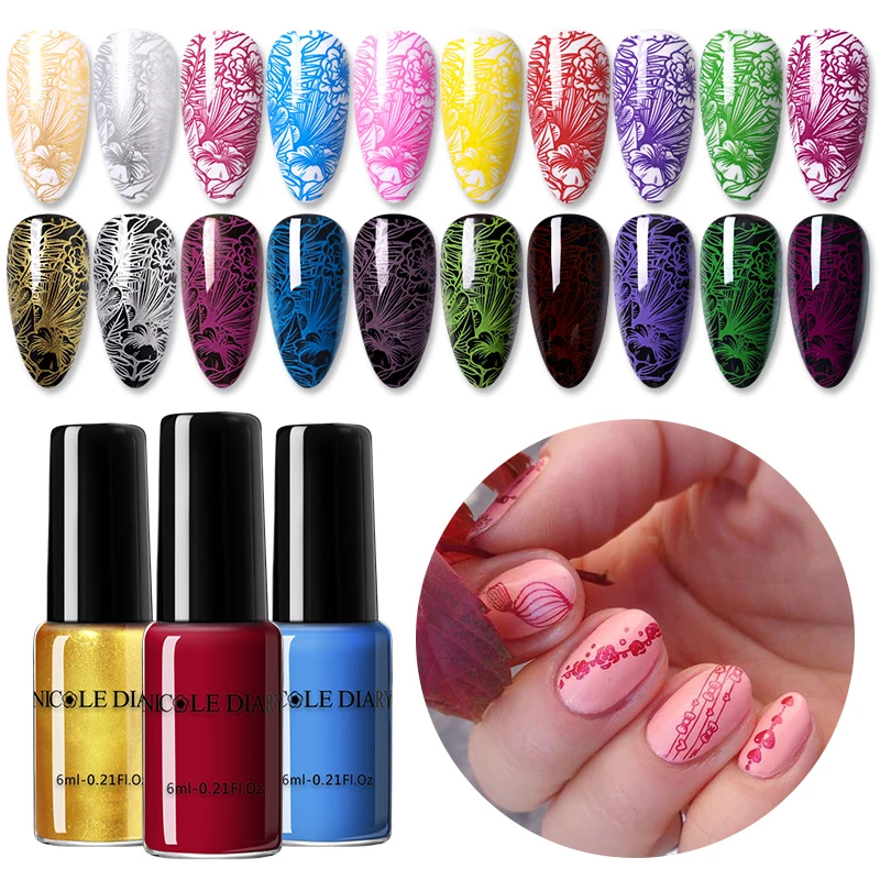 Лак для стемпинга NICOLE DIARY для ногтей, черный, белый, стемпинг ногтей покрытие лак, золото, серебро, масло для пластин, для маникюра